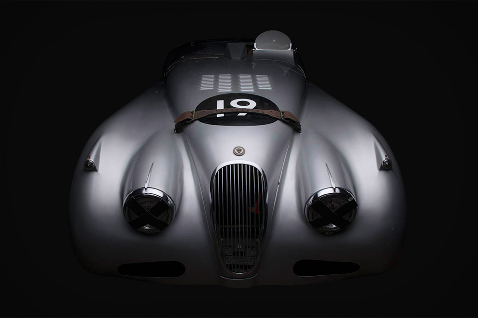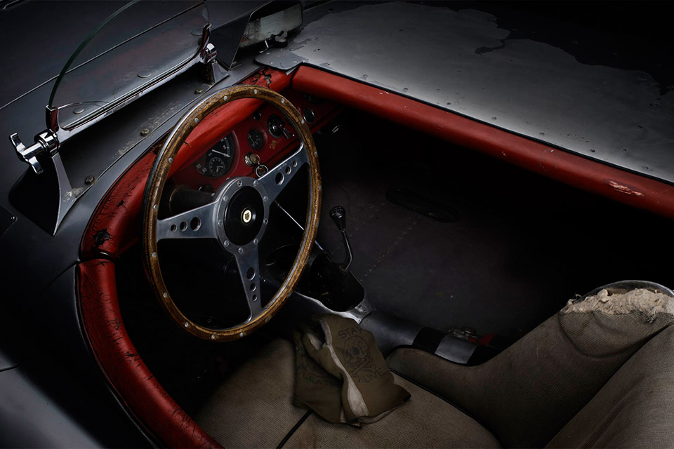 There aren't many cars that look like this 1954 Jaguar XK120M. There aren't many with as rich a history, either. It started life as a regular XK120 Roadster, shipped from the factory in Coventry to New York, and delivered to Tom Jaycox, who proceeded to turn it into a road-drivable race car. Carpets, seats, and the windshield were removed in the name of weight reduction, furthered by the holes drilled in the frame, trunk, and under the hood. An LT1 race seat was procured from Europe, Leyland Motors was consulted about modifications for the engine, aluminum rimmed C-type wheels were installed, and eventually, the machine was raced alongside his brother's red XK120M. It's since been fully restored, but retains the weathered details that link it to its unique history, making it one of the most special Jaguars available today.