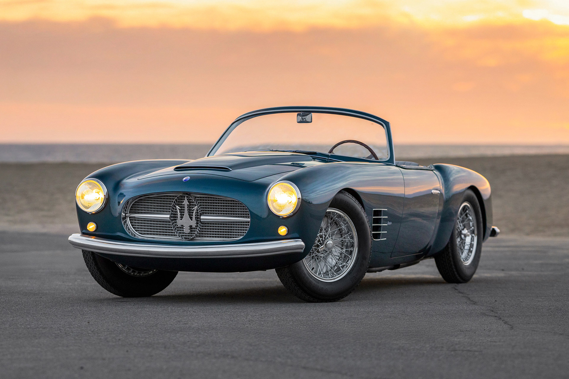 The Maserati A6G/54 Zagato was built to be a race car; blending beauty and speed. Only one was built, as a prototype, with an open roof — this one. Ordered by then Argentine president Juan Perón, it remains the only open Zagato body ever built on its platform, was recipient of the very first A6G/54 dual overhead cam engine, and retains its matching-numbers engine, transmission, aluminum alloy bodywork, and front and rear axles. Winner of multiple awards at car shows across the globe, it was restored to Pebble Beach-awarded condition in 2024 by Fast Cars and is now on the market.