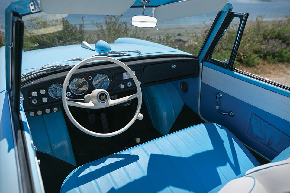 The result of over a decade of development, the Amphicar debuted in 1961 as the first fully amphibious vehicle sold to the public. Transitioning from land to water was a breeze, with just a few simple steps and a pull of a lever — which moves the engine's power from the wheels to dual rear propellers — necessary. This 1966 Amphicar 770 has recently undergone a full restoration with an eye on authenticity and saw its top and interior replaced, and its body painted the factory color of Lagoon Blue. Accompanied by extensive documentation, it would make a highly entertaining and unusual addition to any collection.