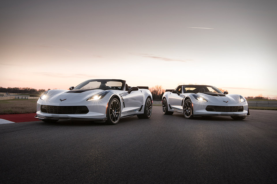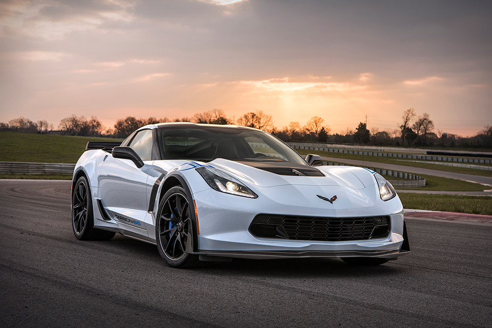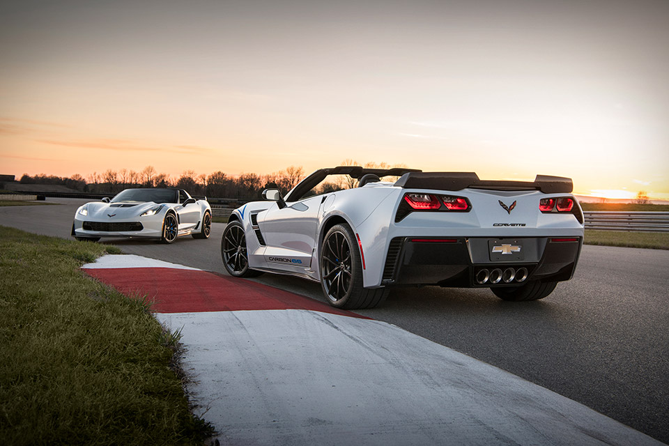 Built to celebrate the 65th anniversary of the Corvette, the 2018 Chevrolet Corvette Carbon 65 Edition gives the latest version a unique livery. A new Ceramic Matrix Gray paint color pairs well with the carbon fiber ground effects, hood section, intake ducts, roof, and spoiler, as well as with the blue graphics and brake calipers. Inside you'll find a carbon fiber steering wheel, carbon fiber trim, and blue contrast stitching on the Jet Black seats. Available exclusively on Grand Sport and Z06 models in both coupe and convertible variants and limited to just 650 numbered examples.