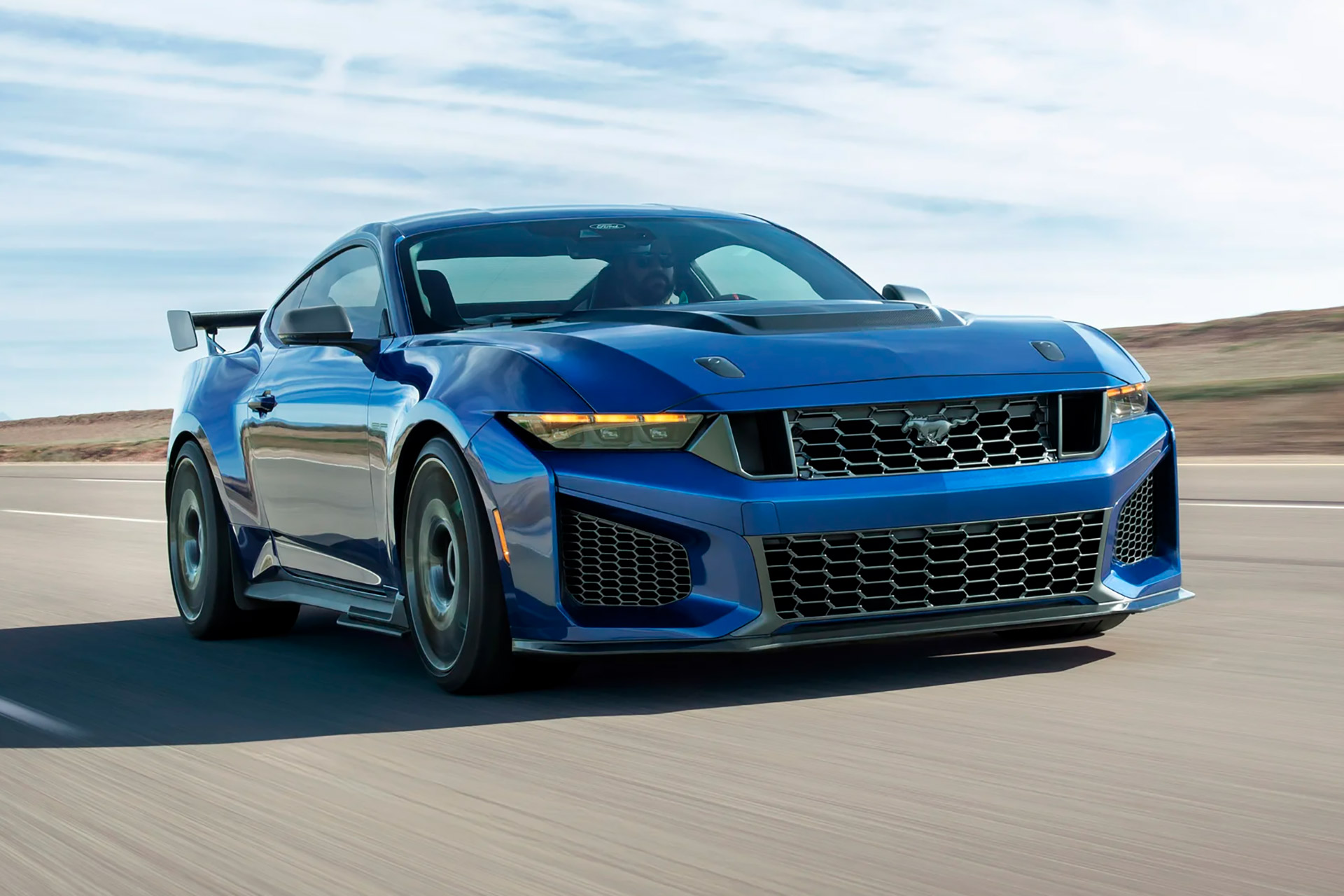 The Mustang GTD supercar and Mustang GT3 race car represent the pinnacle of Ford's Pony Car lineup. Now the Dark Horse SC Coupe will be right behind them. It was developed in collaboration with Ford Racing and adopts a host of features derived from its more extreme stablemates. Those include a supercharged 5.2-liter V8 paired with a seven-speed dual-clutch transmission, Brembo carbon-ceramic brakes and Michelin Pilot Sport Cup2 R tires on the Track Pack model, and 3D-printed titanium accents. Several aero changes are apparent, including an aluminum hood with a large vent, a revised fascia and underbody venting, and a ducktail-shaped decklid that improves efficiency by 10 percent — enough that the GTD team adopted it as well. Other notable changes include next-generation MagneRide dampers with revised spring rates and knuckles, carbon fiber wheels, a Variable Traction Control system with five distinct levels, a leather-wrapped, flat-bottom steering wheel, and Alcantara and carbon-fiber accents on the Track Pack, which also gets Recaro leather and Dinamica sport seats and a storage shelf in place of the rear seats. The Mustang Dark Horse SC will be available this summer.