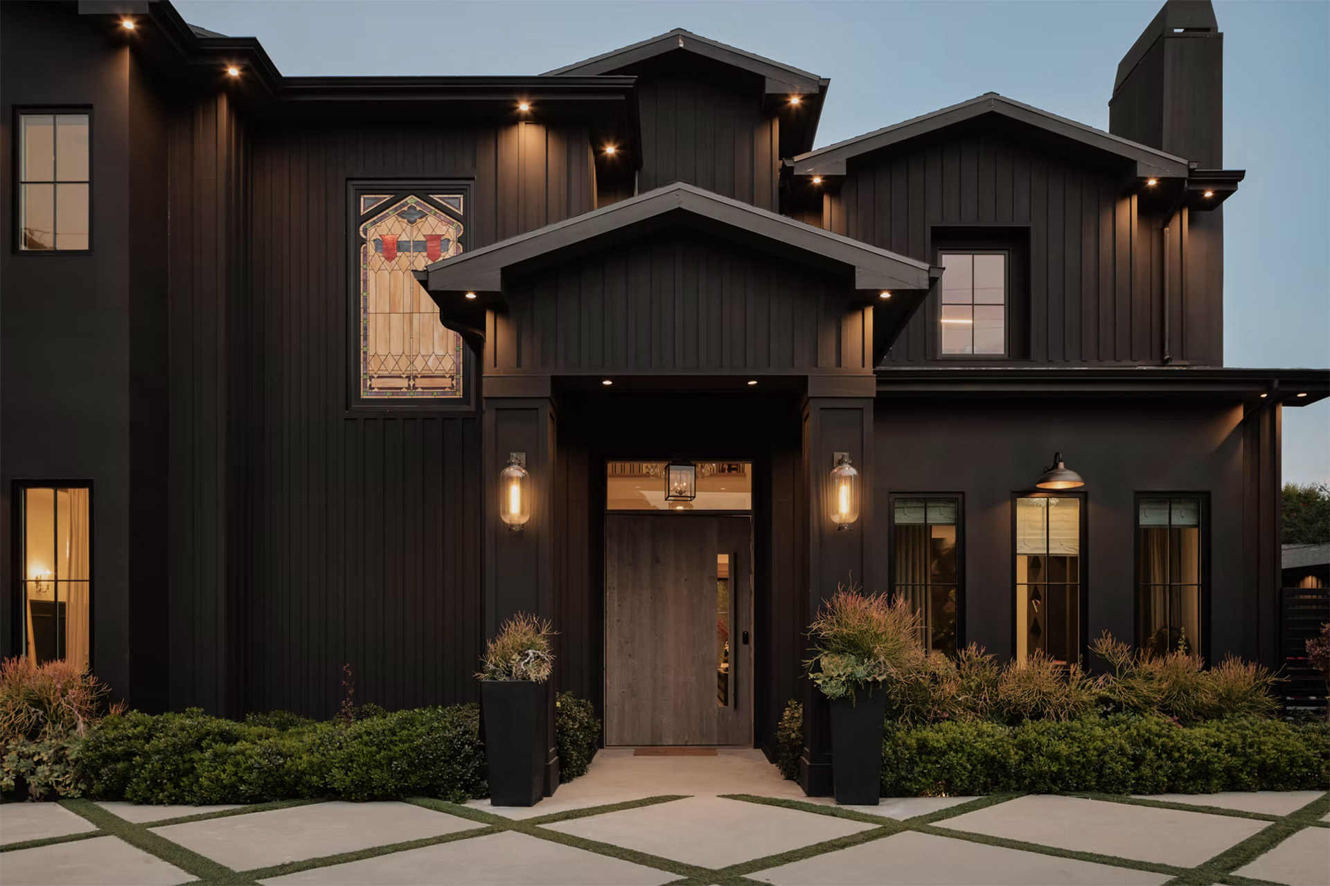 Protected by gates in the prestigious Amestoy Estates community in Encino, CA, 5330 Amestoy mixes modern, traditional, and rock influences in a way only designer Kishani Perera could pull off. The 7,200-square-foot home offers six bedrooms and eleven baths, with thoughtful built-ins, plentiful wallpaper, a chef-worthy minimalist kitchen, reclaimed wood doors, vintage Parisian chandeliers, stained glass windows, and a movie theater hidden behind a bookshelf. High-end finishes and plentiful natural light complete the interior, while the outside features a lounging area, basketball court, outdoor kitchen, and a rectangular swimming pool with an integrated spa. It's on the market now via Jordyn Shulman of Bluejay Properties.