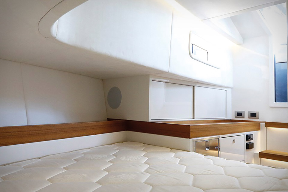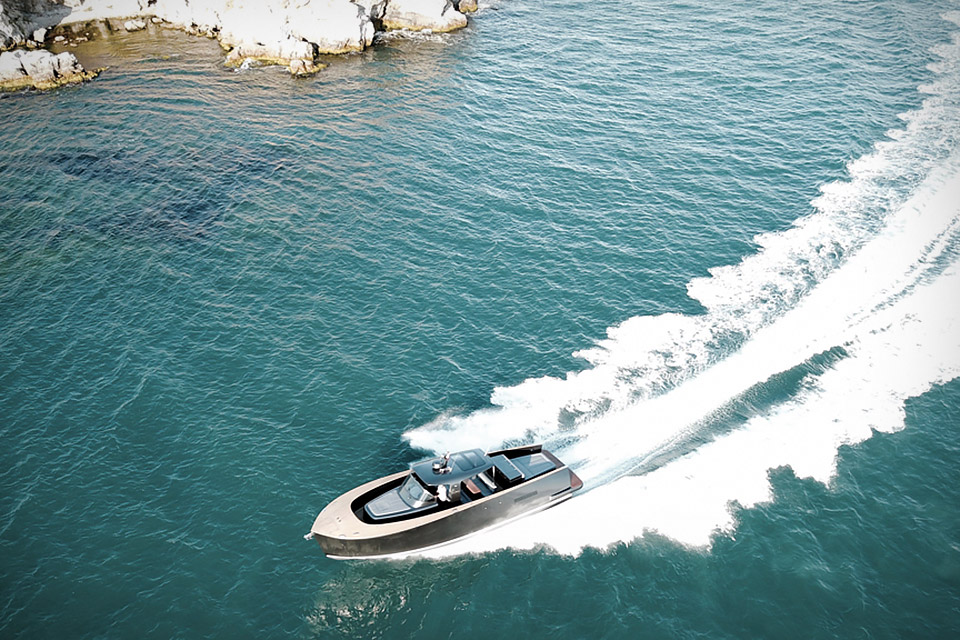 Designed for short trips on the sea, the Alen 45 Day Boat replaces the well-received 43-foot model in the yacht builder's lineup. The majority of the deck is coated in teak, while a grill, fridge, and wet bar let you cook up delicious meals. Interior space is kept to a minimum, yet there's still room for a bedroom, full-size bath, and small kitchen, and sunbeds on both the bow and stern offer plenty of space for relaxing outside. Powered by twin Volvo IPS 600 engines, it has a top speed of 38 knots and a range of 300 nautical miles, and the steep composite hull handles rough waters with aplomb.