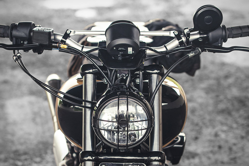Originally built for a H-D dealership contest, the Analog Harley-Davison Street 750 Motorcycle takes one of the company's most affordable models and turns it into a rugged custom scrambler. Gone are the stock wheels, replaced with custom spokes and rims from Buchanan's, wrapped in Continental TKC80 tires. Fox Podium RC1 Shocks help absorb bumps in the rear, and are topped with a custom rear fender and an Analog-sourced tail light, while a CNC-milled aluminum luggage rack accommodates the Cotter Pin tool and luggage rolls. The engine's growl is now heard through a two-into-one stainless steel exhaust system capped by a Cone Engineering muffler, and has a custom perforated heat shield on the side to help keep you cool on longer rides.