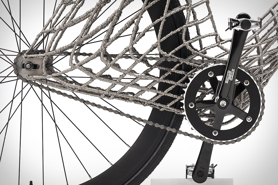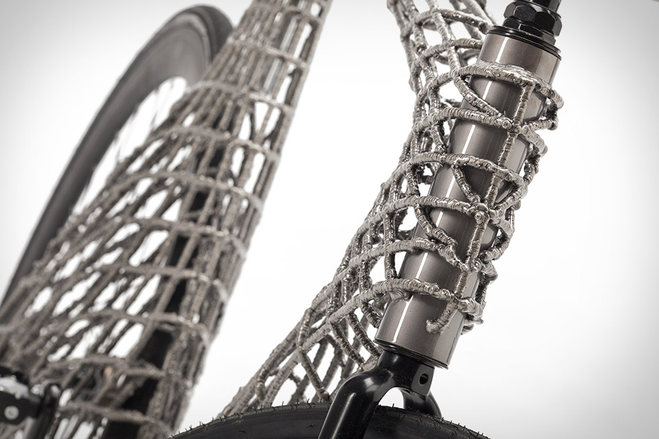 Designed and built by a group of four Dutch college students as part of a three-month research project, the Arc 3D-Printed Bicycle is a great example of the technology's potential. The students partnered with Amsterdam-based MX3D to utilize their printing process, which uses articulated robot arms to print structures in mid-air, thus allowing for far larger objects to be made than with a traditional printer. While the spider-like frame of the bike could bring weight savings in the future, the current prototype weighs roughly the same as a normal bike, with a fixed gear configuration and off-the-shelf fork, handlebars, and seat.