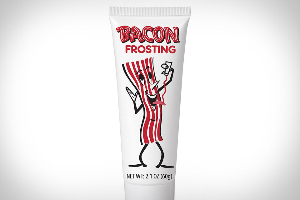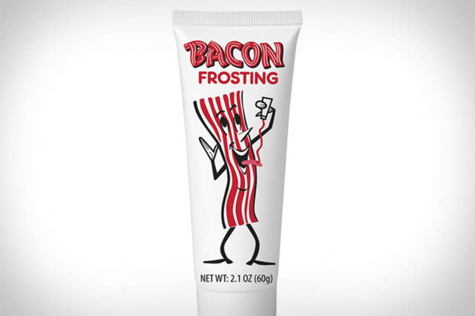 Worried about trying to actually bake with bacon? Wait until your cupcakes, cookies, or cakes are out of the oven and then amp them up with Bacon Frosting ($7). True to its name, this dark-red bacon-flavored frosting will add a blast of smoky sweet flavor to any culinary delight — just be careful, lest you be tempted to eat it all by itself like the weird bacon man is doing on the tube.
