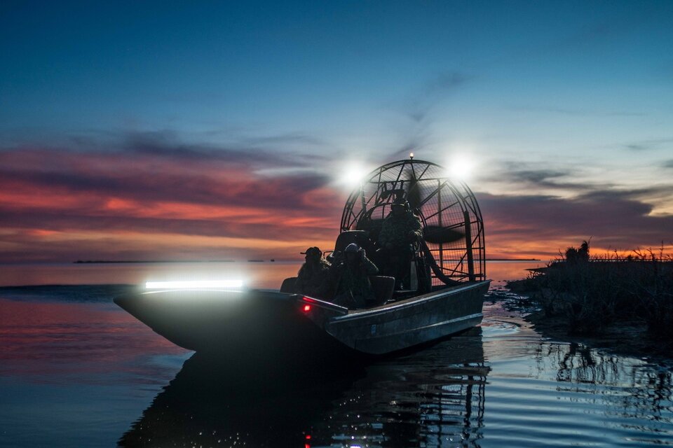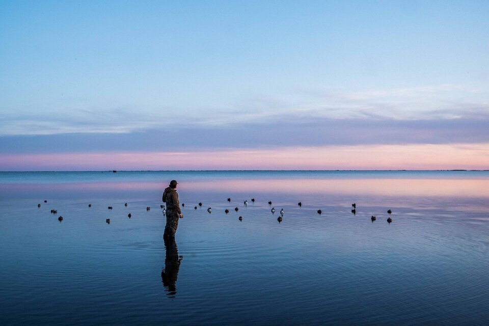 Every November, one of the continent's great waterfowl migrations stacks along the western edge of the Gulf of Mexico, and Bay Flats Lodge is perfectly positioned to intercept it. On the shore of San Antonio Bay in the Texas Coastal Bend, guided hunts push out before first light to remote marsh blinds and bay-edge pop-up blinds, working Gadwall, Widgeon, Pintail, Canvasback, Redhead, and Teal over full-bodied decoys through late morning. For those who want more, the Cast and Blast package moves guests straight from the blind to a bay boat for speckled trout, redfish, and flounder on the same water. The lodge runs more than 20,000 square feet on the waterfront with room for up to 35 guests, and packages cover lodging, meals, guide service, and bird and fish cleaning. Dinner is fresh bay shrimp.