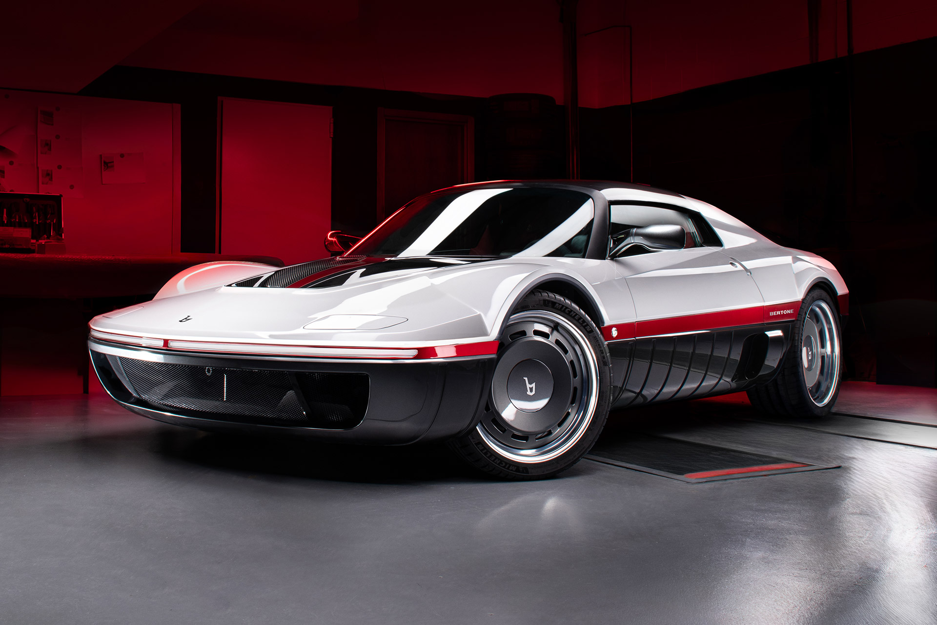 Based on the 1969 Runabout concept, which was inspired by the geometry of late-1960s racing speedboats, the new Bertone Runabout is a modern throwback. The wedge-shaped car comes in two versions, the open-air Barchetta or the Targa with a removable roof. Both models get a bold bi-color scheme, with interior details like a nautical compass, pop-up headlights, a minimalist steering wheel, a manual gearbox, aluminum accents, and handcrafted leather trim. Powered by a supercharged 3.5L V6 engine making 475 horsepower, it has a 0-60 time of 4.1 seconds, a top speed of 168 mph, and is limited to 25 examples worldwide.