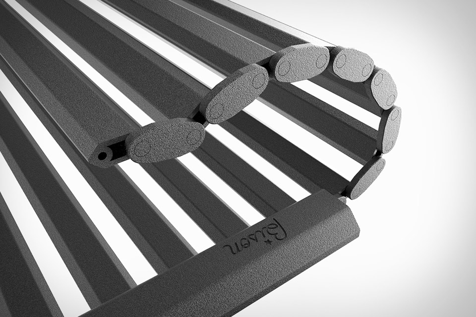 Plenty of grills roll — on wheels attached to their legs. The Bison Rolling Grill curls up into a compact size that makes it perfect for backpackers, campers, and anyone else who enjoys the outdoors. Measuring roughly 8" x 12" when unfurled, it rolls up to less than two-inches in diameter. It's made from aluminum, has a nonstick Teflon coating and hollow pockets in the grates to prevent burn marks, and includes a stake stand for use over a campfire.