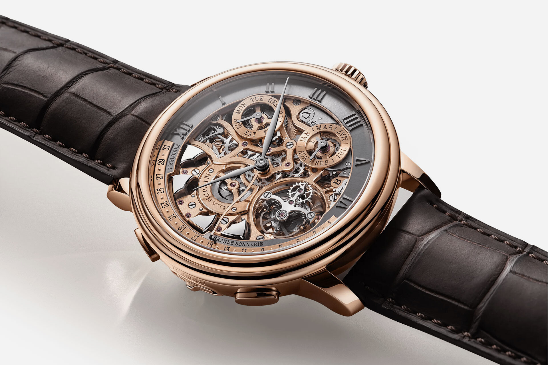 Blancpain is best known for its Fifty Fathoms dive watches, but as a brand that's been around for 290 years, they're more than capable of dipping their toes into high horology. The Grande Double Sonnerie is the latest example of their watchmaking prowess. In addition to the Sonnerie and its two melodies, it also houses a flying tourbillon, a retrograde perpetual calendar, and traditional hour and minute indications, as well as as selector for the two separate melodies. Made by hand, each watch takes roughly 12 months to complete, limiting production to just two units a year.