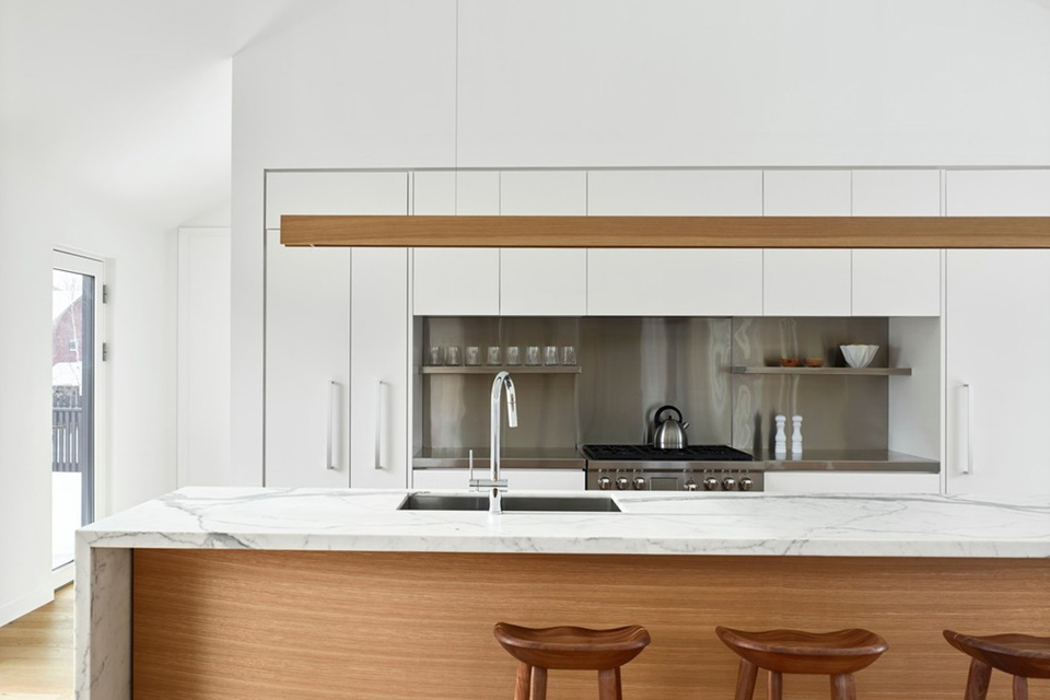 在位于安大略省的蓝山里的私人滑雪俱乐部之上,是阿尔塔雪屋。它继承了传统阿尔卑斯山小屋的风格,以一种极具现代化气息的方式打造而成。在这整个区域的传统农舍都建立好了之后,阿尔塔雪屋就根据它们的风格,构建出简单不简约的造型以及倾斜式屋顶。它还采用黑色加拿大松树的材质粉刷墙壁,打造出一种现代的外观,与落雪形成强烈的对比。而与此同时,房屋的入口却使用白色木材进行打造。为了可以最大化地眺望山景,室内的装饰与布局都显得不是那么得传统。卧室与桑拿房置于一楼,反而主要使用的起居室则在二楼,让视野的开阔程度尽可能得宽广。