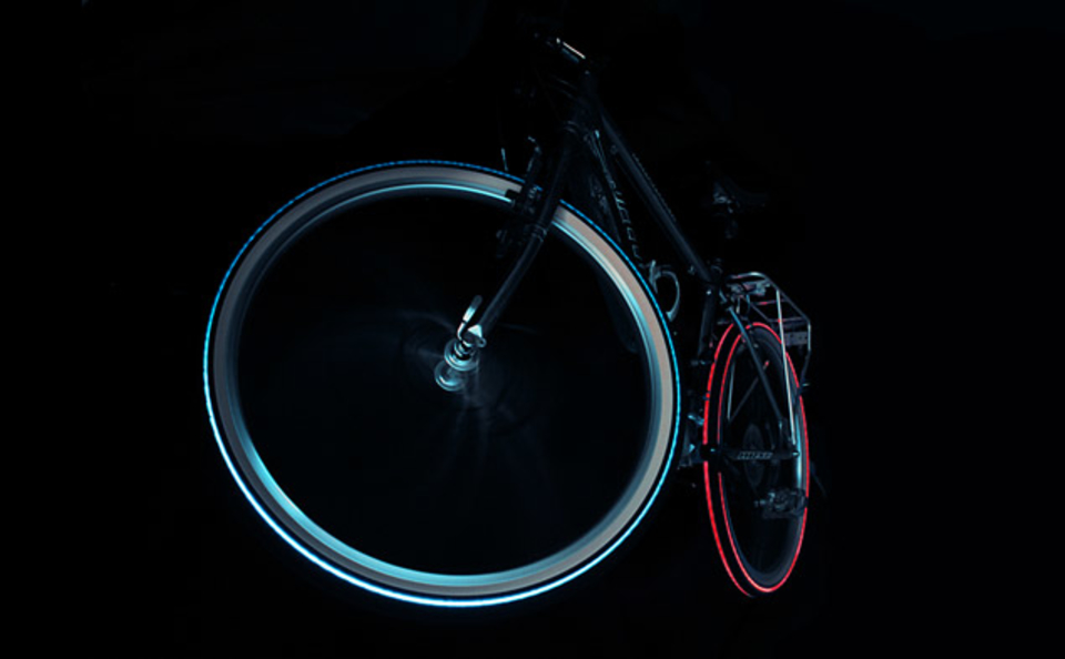 Forget silly clip-on lights or day-glo outfits — now you can stay visibly safe during nighttime bike rides with Cyglo Tyres ($TBA). Equipped with motion sensors inside, these unique tires feature bright, high-powered LED lights inside the tread or wall that come on automatically as soon as you begin to move, making you highly visible to drivers who will probably ask themselves how you managed to steal a Tron light bike off the Disney lot.