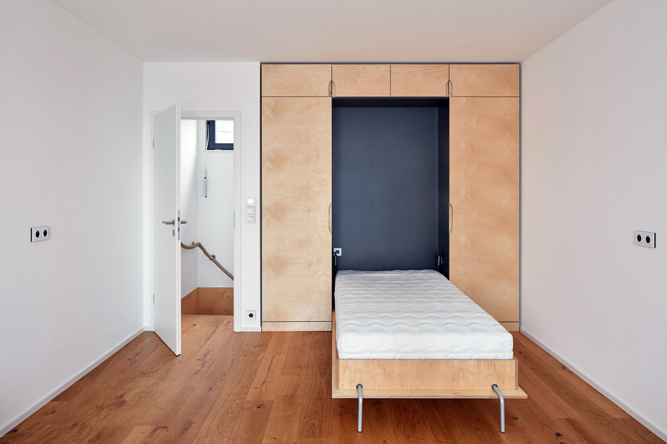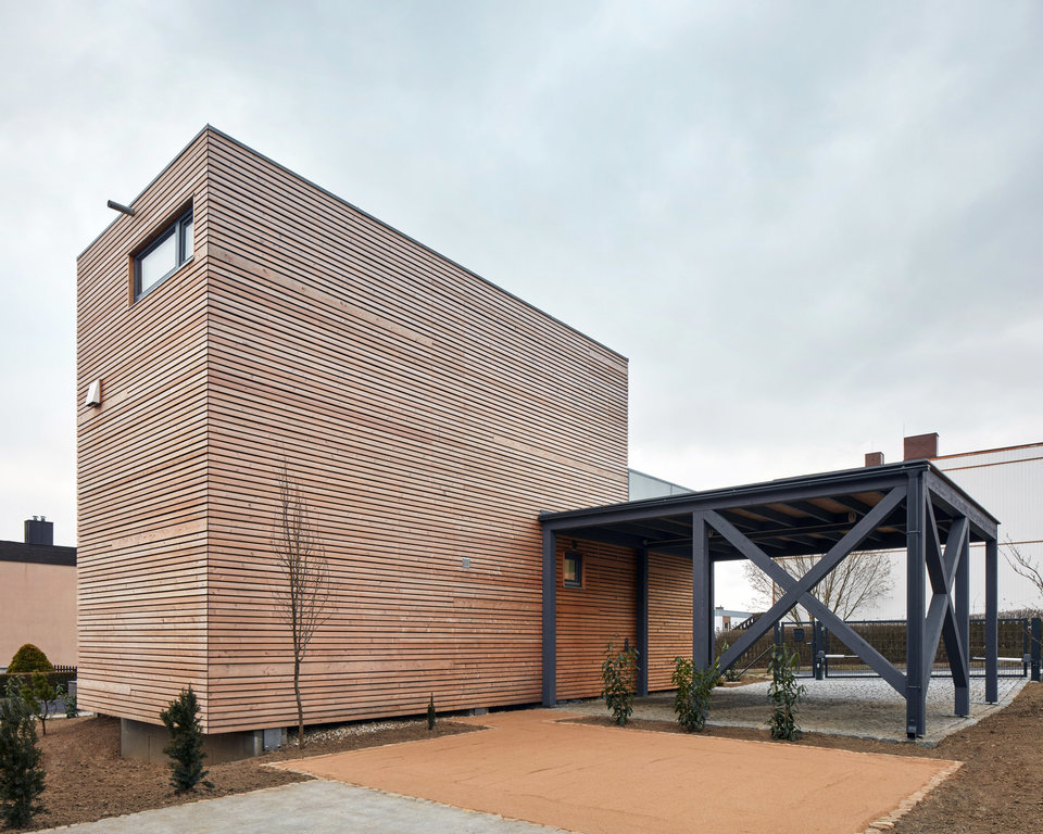 Bevor die Gemeinde von der Arbeit nach Hause kam, hatten sie bereits einen neuen Nachbarn. Das zweistöckige Freedomek-Haus Nr. 61 befindet sich in der Pilsen-Region der Tschechischen Republik. Es kam in zwei Modulen an, die komplett mit allem ausgestattet waren, darunter Möbel und Möbel. Von der Holzfaserdämmung über die nördliche Lärchenfassade bis hin zu Eichenparkett und Birkensperrholzmöbeln ist das Fertighaus fast vollständig aus Holz für eine minimalistische Ästhetik innen und außen gebaut.