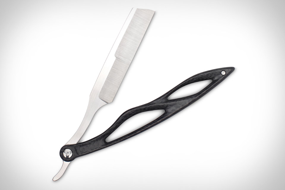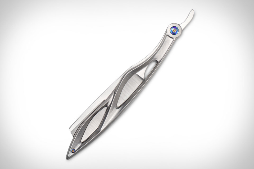 Classic functionality meets futuristic design in the Discommon Goods Straight Razor. It takes the simple nature of the lone-blade razor and elevates it, with a handle made from either carbon or titanium billet, milled and/or machined with great care to create the complex shape. It's then paired with a hand-ground Z-FiNit steel blade from Joseph Bowen, and finished with an anodized, laser etched aluminum spine spacer and hardened steel stop pin. Limited to just 20 pieces (10 carbon, 10 titanium), it comes in a custom leather and felt case from This Is Ground.