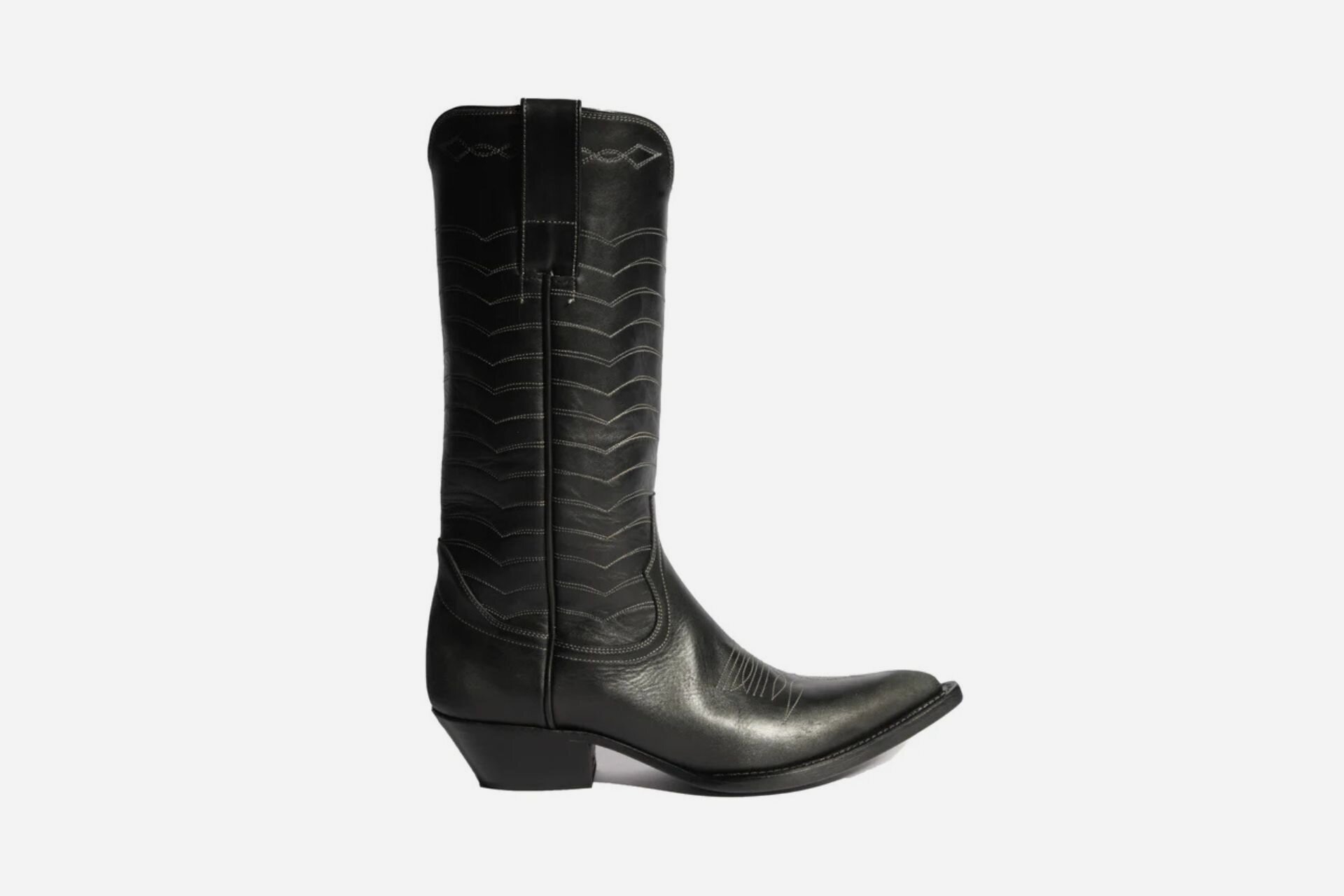 Enfants Riches Déprimés doesn't make cowboy boots so much as it deconstructs them. The Split Ends are built from buffed calf leather in Italy, with embroidery running the shaft and toe box in a way that feels hand-worn from day one. A medial side zip with custom hardware and a Cuban 2-inch heel complete the silhouette, while an elongated pull tab on the lateral side preserves the shape over time without compromising the boot's studied nonchalance. Henri Alexander Levy's label has always operated where luxury and disaffection meet, and the Split Ends are exactly that: impeccably made, deliberately rough around the edges.