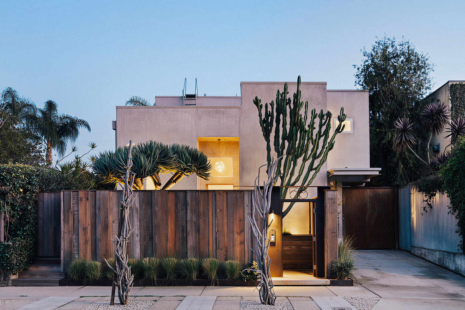 Buck Mason cofounder Erik Ford and HGTV designer Leanne Ford, the husband and wife duo with jealousy-inducing taste, reimagined this Venice sanctuary after losing their home in the Palisades Fire. The compound includes a two-story main residence and a detached guest house totaling four bedrooms and five bathrooms. The interiors reflect the refined aesthetic of Buck Mason, paired with Leanne's white-on-white signature approach. She eliminated a kitchen wall to create a light-filled cooking space anchored by Gaggenau appliances and Dornbracht fixtures. Fourteen-foot ceilings and wide-plank engineered white oak floors extend throughout both structures. Fleetwood doors dissolve the boundary between interior and exterior spaces, opening both buildings to a private courtyard with heated saltwater pool, spa, and bamboo grove.