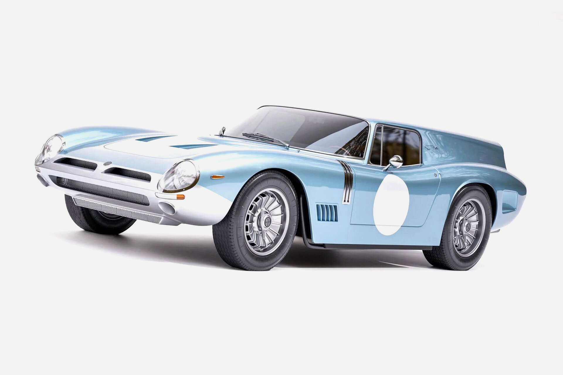 Giotto Bizzarrini, after leaving Ferrari, created the 250 GT Breadvan in 1962 for Count Giovanni Volpi di Misurata's Scuderia Serenissima, with a goal of maximizing aerodynamic performance. He later adopted the design for the Iso A3/C, which serves as the underpinning of the ErreErre Fuoriserie ForGiotto. With a Chevrolet 327 small-block V8 at its core, it produces up to 400 horsepower, with hand-hammered bodywork, a 4-speed Borg-Warner transmission, period-correct 15-inch rims, and an interior that includes a three-spoke wooden steering wheel and analog instrumentation.
