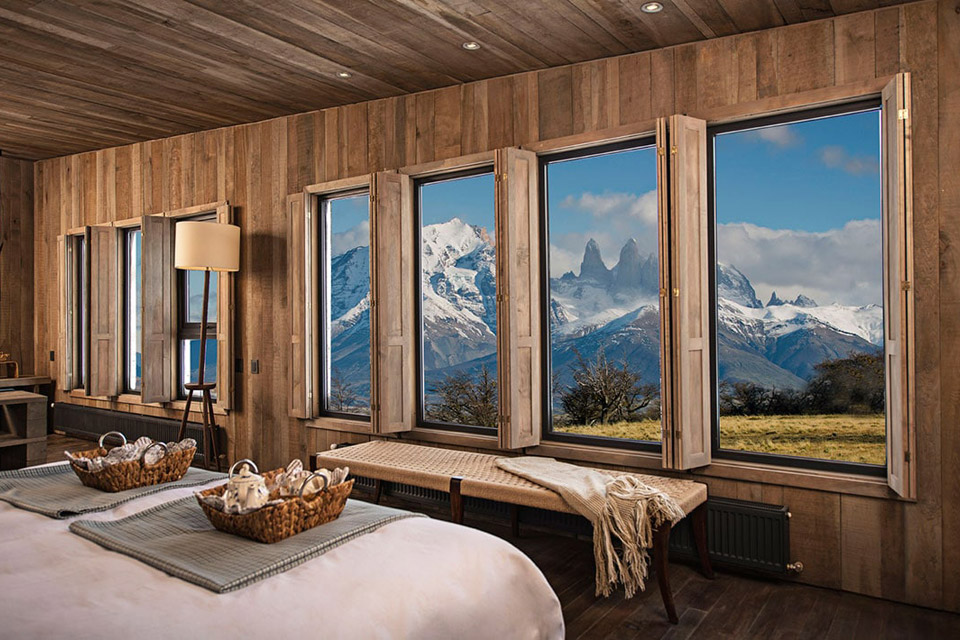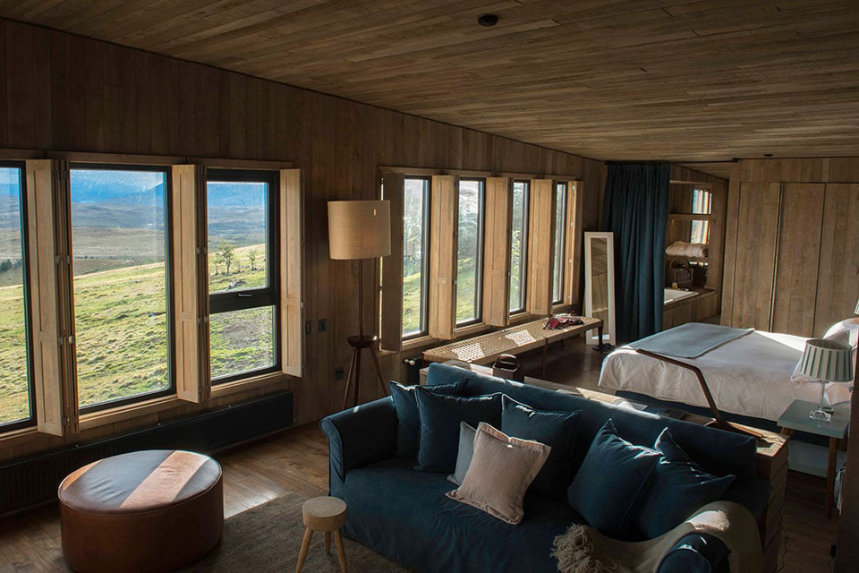 Con un guía privado y un vehículo 4x4 personal, el Refugio Awasi Patagonia es la mejor manera de experimentar el remoto desierto de América del Sur. El retiro está ubicado en una reserva privada en el Parque Nacional Torres del Paine. Enclavado en una ladera, sus 14 villas revestidas de madera ofrecen aislamiento completo y vistas prístinas del lago Sarmiento y la estepa patagónica. Sus exteriores dan la apariencia de un puesto de avanzada de rancho auténtico, mientras que los interiores cuentan con estufas de leña y áreas de estar para proporcionar un refugio cómodo para la naturaleza. Pero nunca escapará por completo del paisaje prístino. Las vistas del lago Sarmiento y la estepa patagónica están siempre expuestas desde el amplio acristalamiento y los jacuzzis al aire libre.