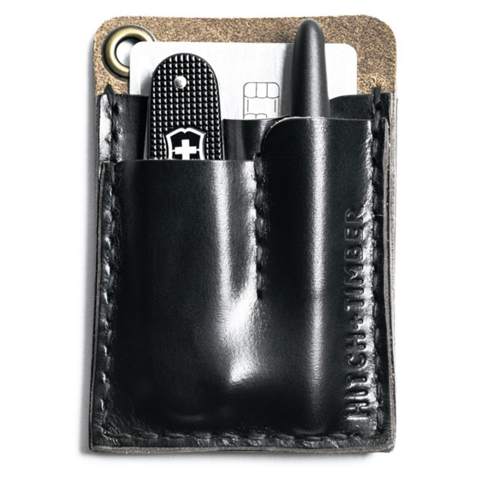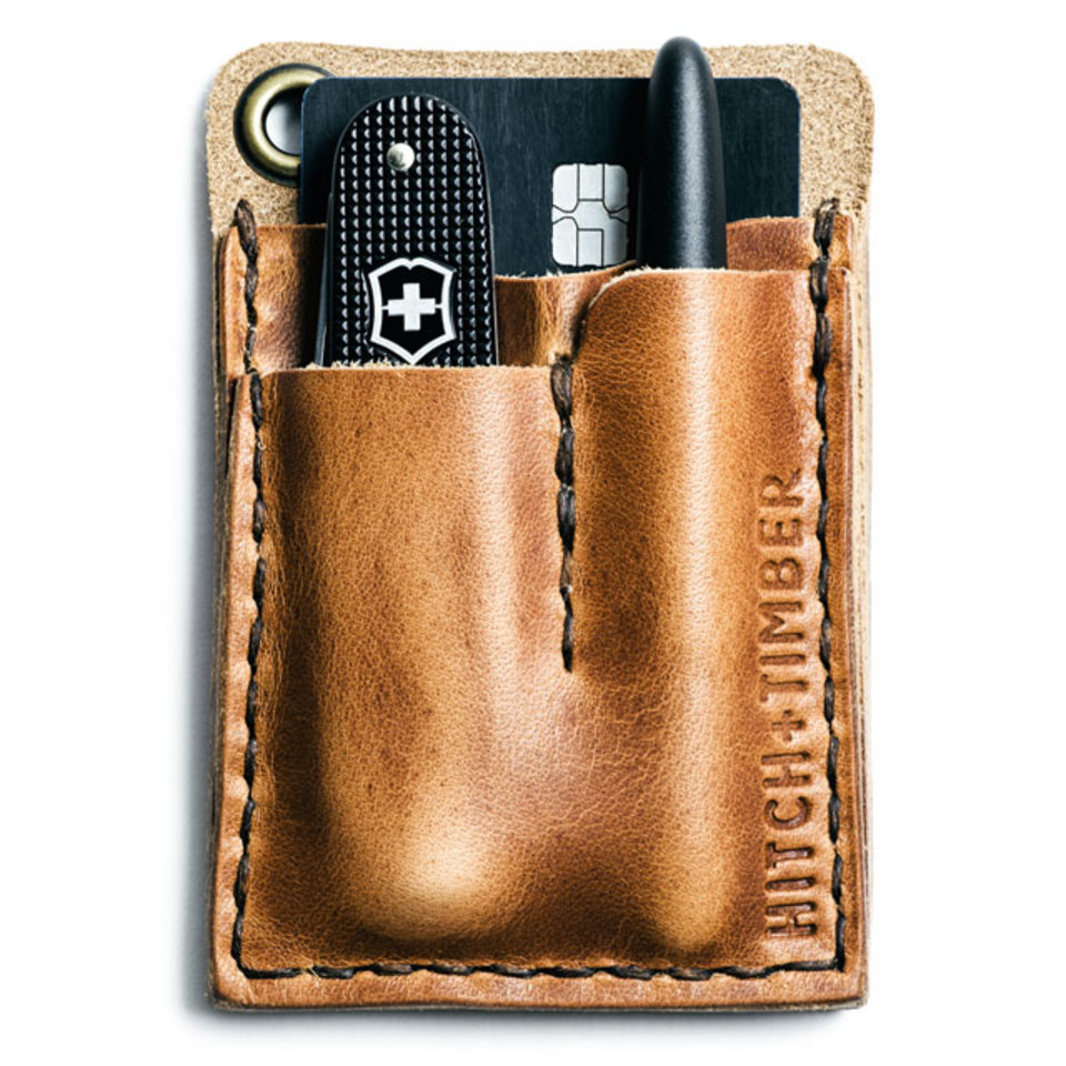 Con un Caddy para Tarjetas Hitch & Timber, no solo obtiene una bonita billetera de cuero. También obtiene la tranquilidad de saber que los artesanos que están detrás ya lo han puesto a prueba. Cada uno de sus diseños ha sido utilizado personalmente y afinado de antemano, para que sepa que cada puntada y bolsillo tienen un propósito. Además de una ranura para almacenar hasta seis tarjetas y algo de efectivo, el caddy también puede manejar el resto de su PTD con un compartimento para una pequeña navaja y un portaplumas dedicado. Todos sus artículos estarán delicadamente alojados en una concha de cuero de cuatro onzas que ha sido cortada, cosida y bruñida a mano en los Estados Unidos. Disponible en negro y bronce inglés.