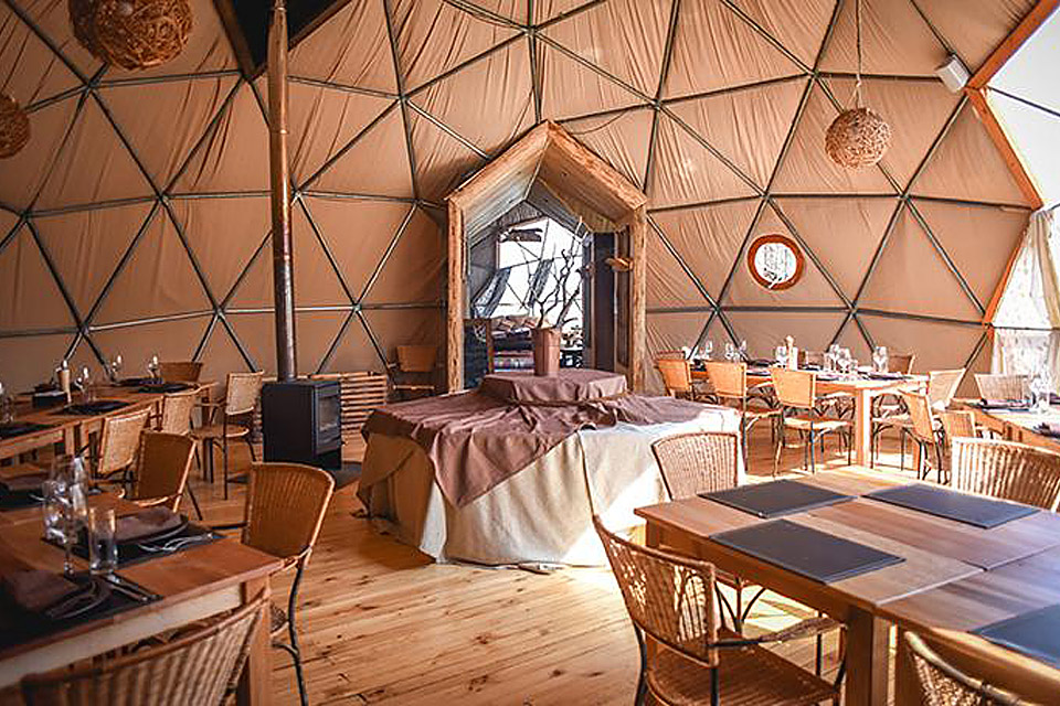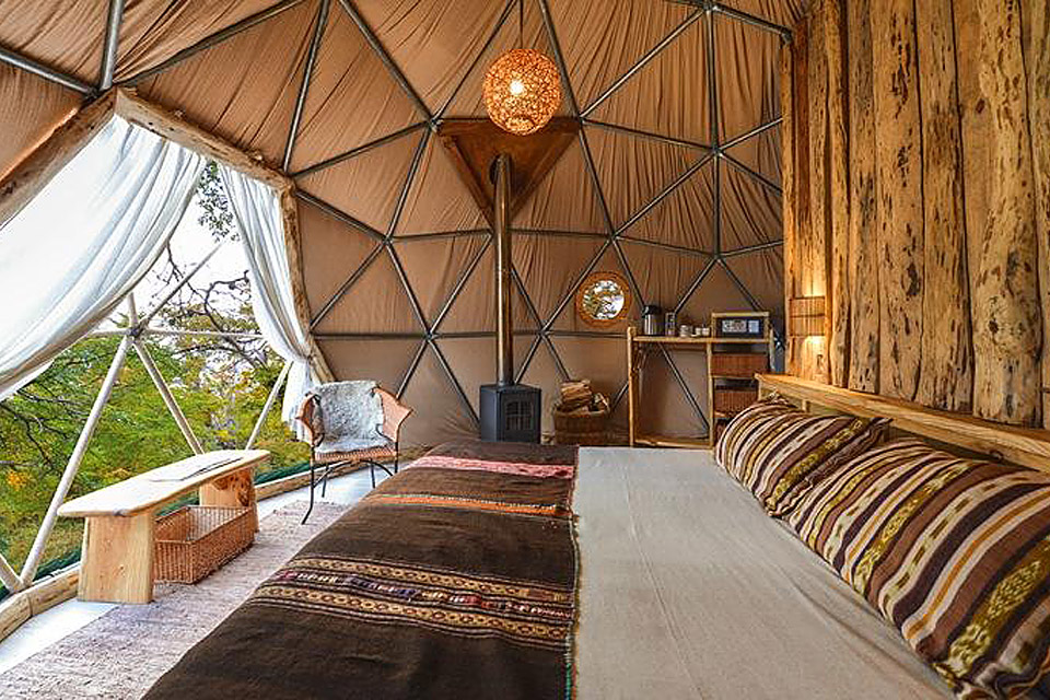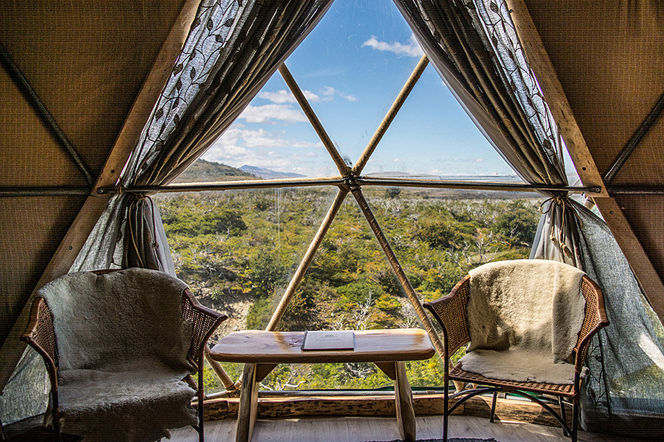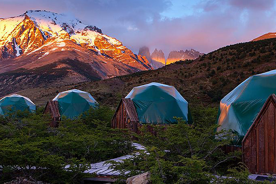 Montañas. Glaciares Lagos. Ubicado en el Parque Nacional Torres del Paine, Ecocamp Patagonia se encuentra en el corazón de todo. El hotel se compone de múltiples cúpulas geodésicas sostenibles, ubicado en el desierto circundante. Obtenga la experiencia de albergue con una habitación compartida, pero opte por una de sus suites exclusivas y disfrute de un baño privado, una estufa de leña y una terraza al aire libre. De cualquier manera, todavía tendrá acceso completo a las cúpulas de yoga y de la comunidad del campamento, donde los huéspedes pueden reunirse en el bar y disfrutar la comida tradicional chilena. También ofrecen muchas oportunidades para salir y explorar a través de excursiones, caminatas y safaris en la vida silvestre.