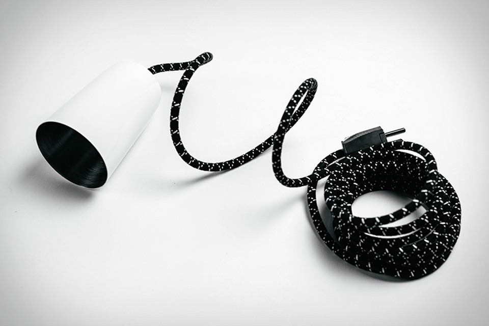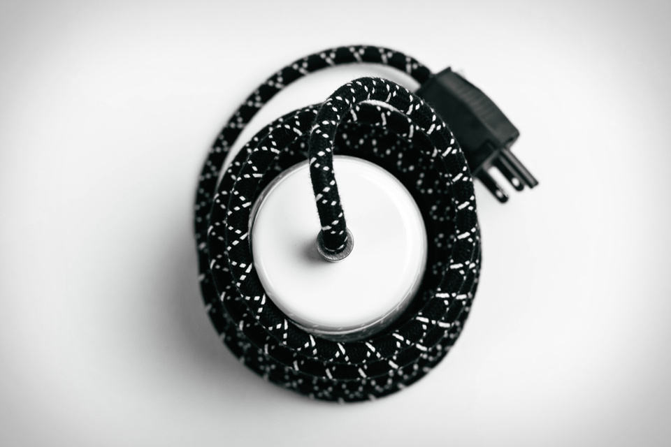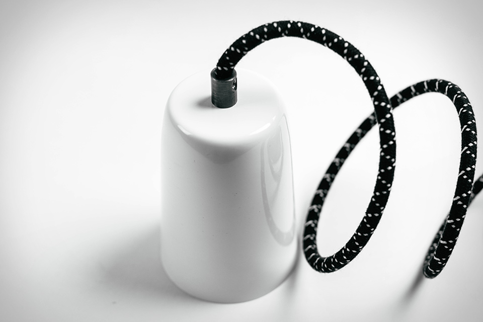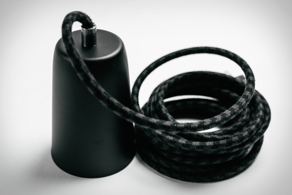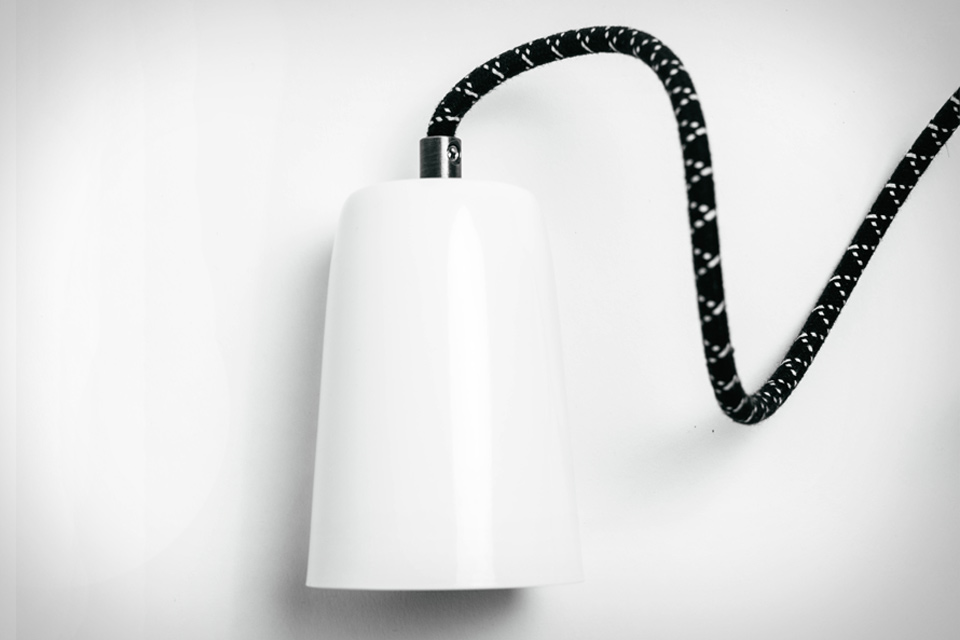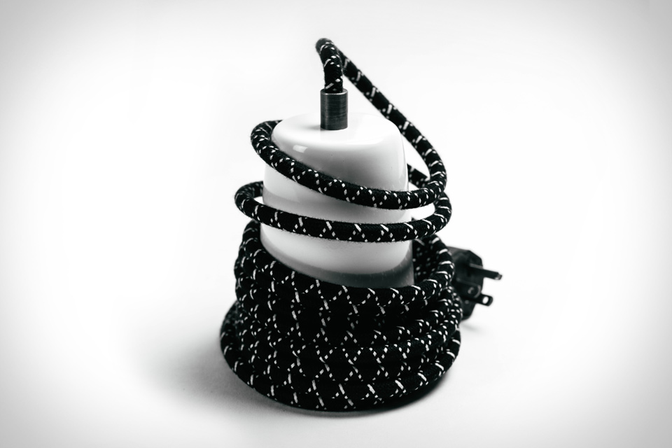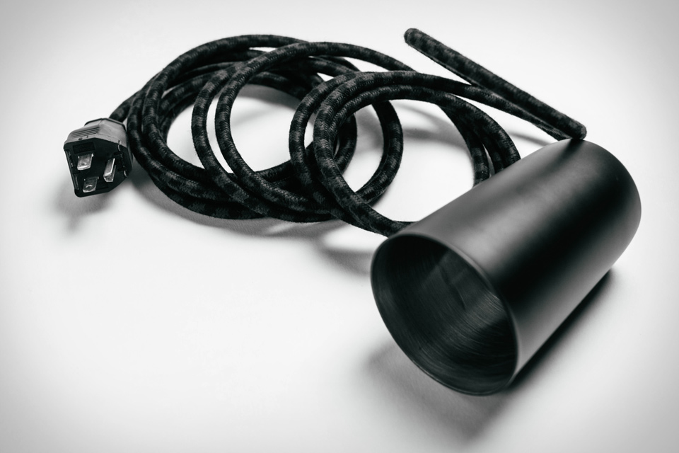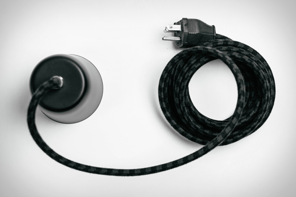 Este no es el tipo de iluminación colgante que se obtiene en una tienda local o en la tienda del hogar. La lámpara de acero inoxidable se fabrica en el medio oeste de los EUA con una cubierta pulverizada, a continuación se agrega el cable eléctrico trenzado de tela insignia de Conway y un interruptor de balancín en línea para un uso fácil. Se puede conectar directamente a una toma de tres clavijas o cableado para realizar integraciones más serias. Una base estándar permite conectar bombillas, incluyendo LED, de hasta 70 vatios. Con 12 pies de cable para experimentar, llévelo a su taller para tener instantáneamente la fuente de iluminación más sofisticada y móvil para encontrar sus herramientas o poner luz extra cuándo trabaje en un proyecto. Disponible en negro sólido o ACDC blanco y de dos tonos.