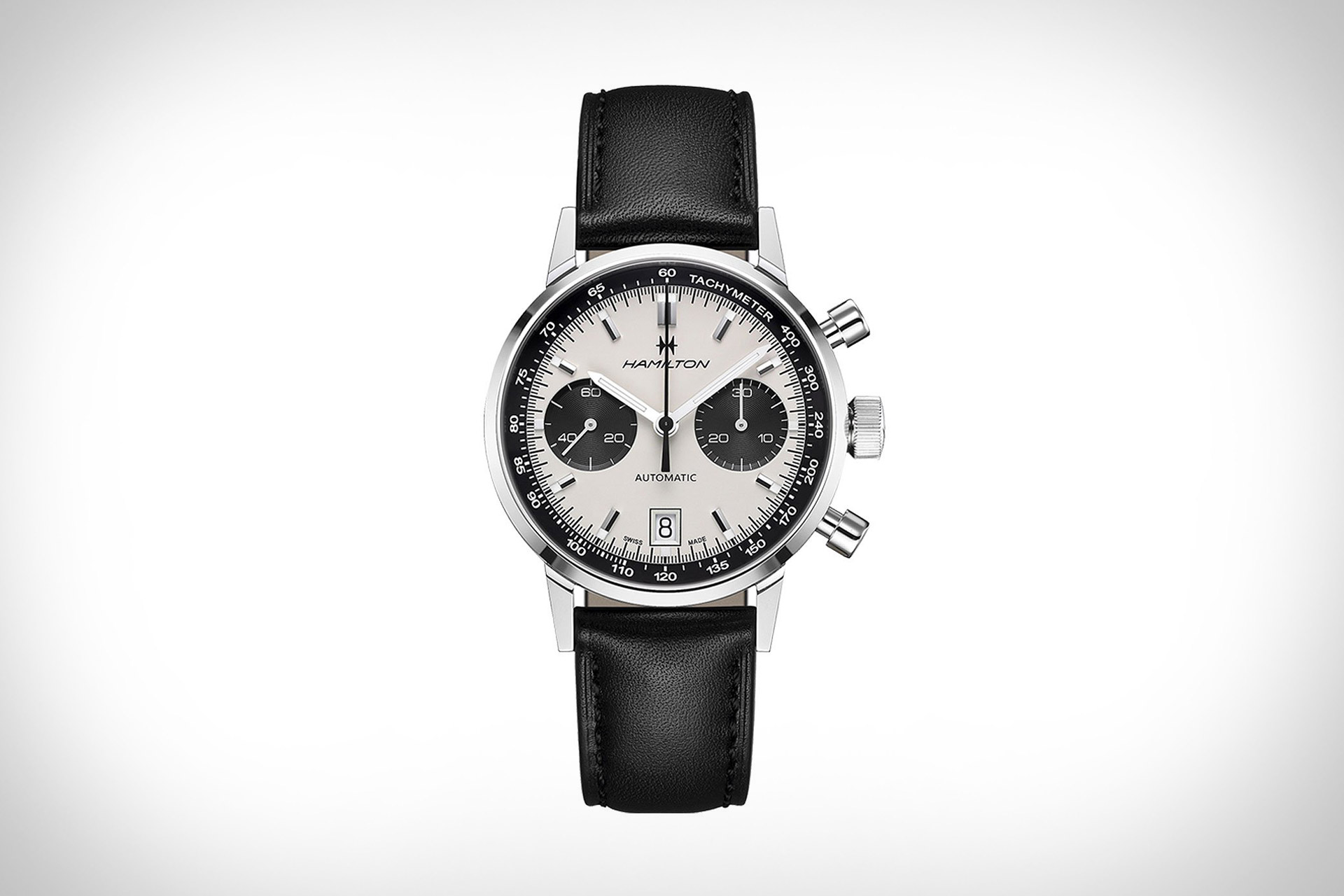 Inspirado en los icónicos relojes de Hamilton de finales de la década de 1960, el Intra-Matic combina un estilo atemporal con actualizaciones modernas. Los aspectos más destacados del reloj incluyen un distintivo dial panda que está enmarcado por un anillo de taquímetro negro para coincidir con los subdiales negros a las tres y nueve en punto, junto con una ventana de fecha a las 6 que está controlada por un botón oculto ubicado en la marca de las diez en punto. El reloj funciona con la maquinaría automática H-31 exclusiva de Hamilton completa con función de cronógrafo, segundos personalizables y una reserva de marcha de 60 horas. Todo lo cual se encuentra dentro de una robusta caja de acero inoxidable de 40 mm y está acabado con una correa de cuero negro.