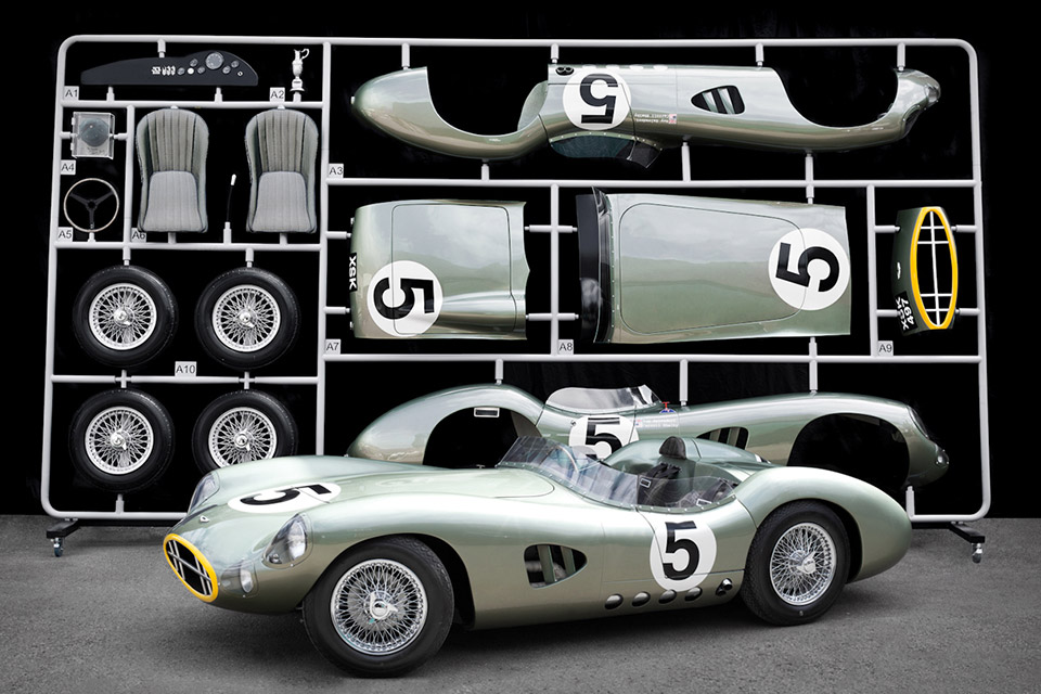 You might want to try re-reading that. Indeed, the Evanta 1959 Aston Martin 1:1 Scale Model (TBA; Auction) is just as big as the original, arriving on a parts tree that measures just over 20' x 11'. Included in this insane kit are four Aston Martin wire wheels with Dunlop race tires, a "Mota Lita" 15" wood-rimmed Aston Martin steering wheel, a pair of race seats, an aluminum gear knob and lever, a full dashboard, a replica of the LeMans trophy, and an Aston Martin cap signed by Roy Salvadori and Carroll Shelby, who drove the original to victory at the 1959 24 Hours of Le Mans.