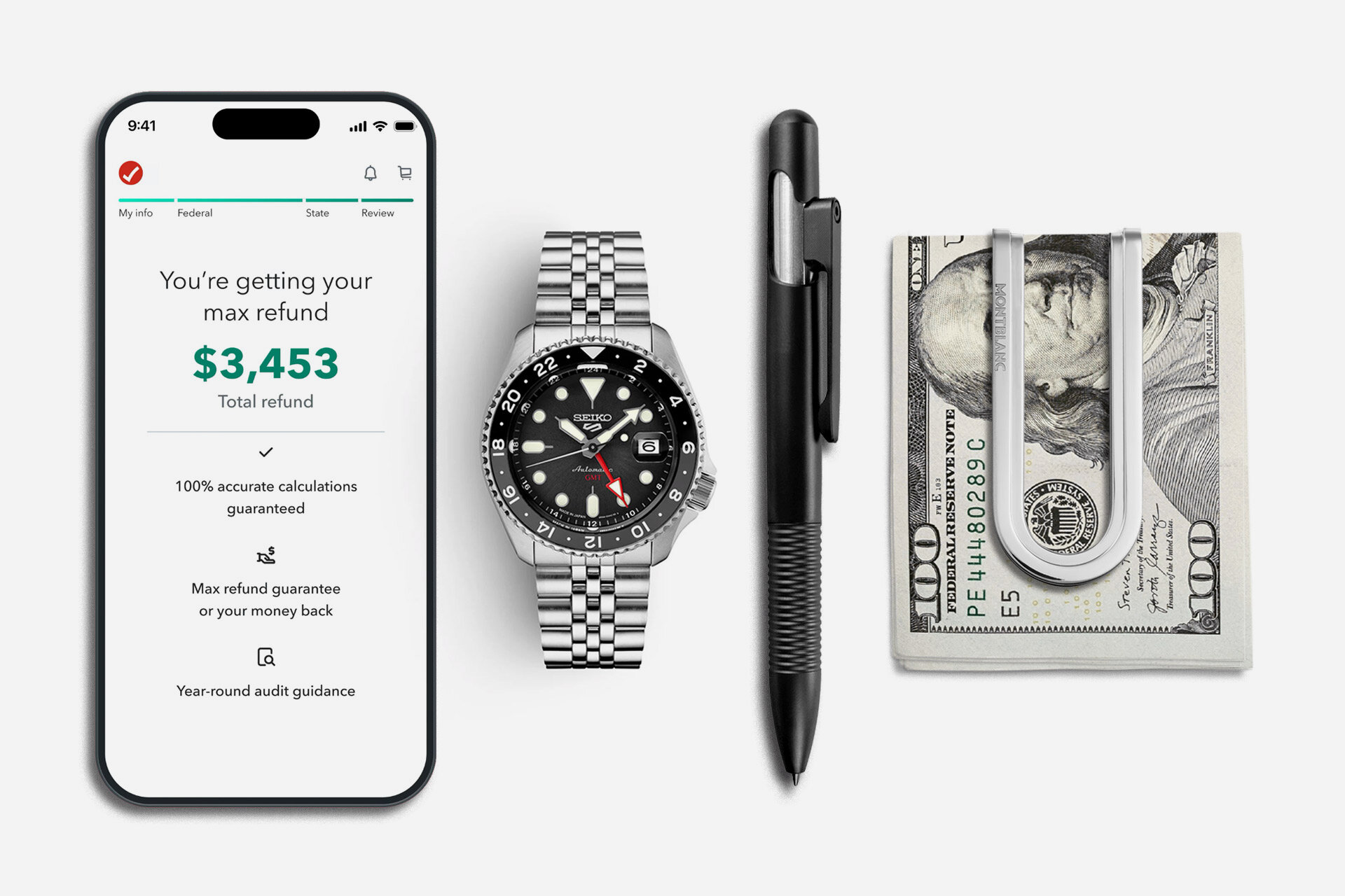 Seiko leads this tax essentials set of TurboTax free filing, field pen, and Montblanc clip.