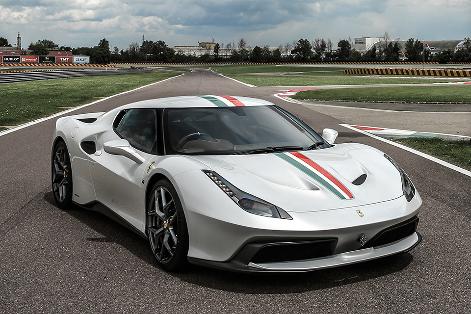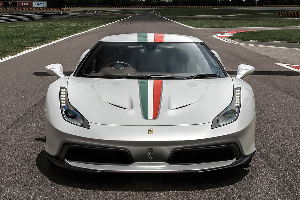 Created for a British customer with very specific tastes, this Ferrari 458 MM Speciale is a one-of-a-kind example of Italian engineering. The glasshouse is extended with black A pillars to give it a visor-like look, changes that led to an all-new handcrafted aluminum body, with composite carbon bumpers, a spoiler in the rear, new side air scoops for the reconfigured cooling system, and a paint scheme that pays homage to its home country's flag. It sits on custom wheels, with modified lights, an improved audio system, and contrast stitching on the upholstery, and unfortunately, is highly unlikely to ever be duplicated.