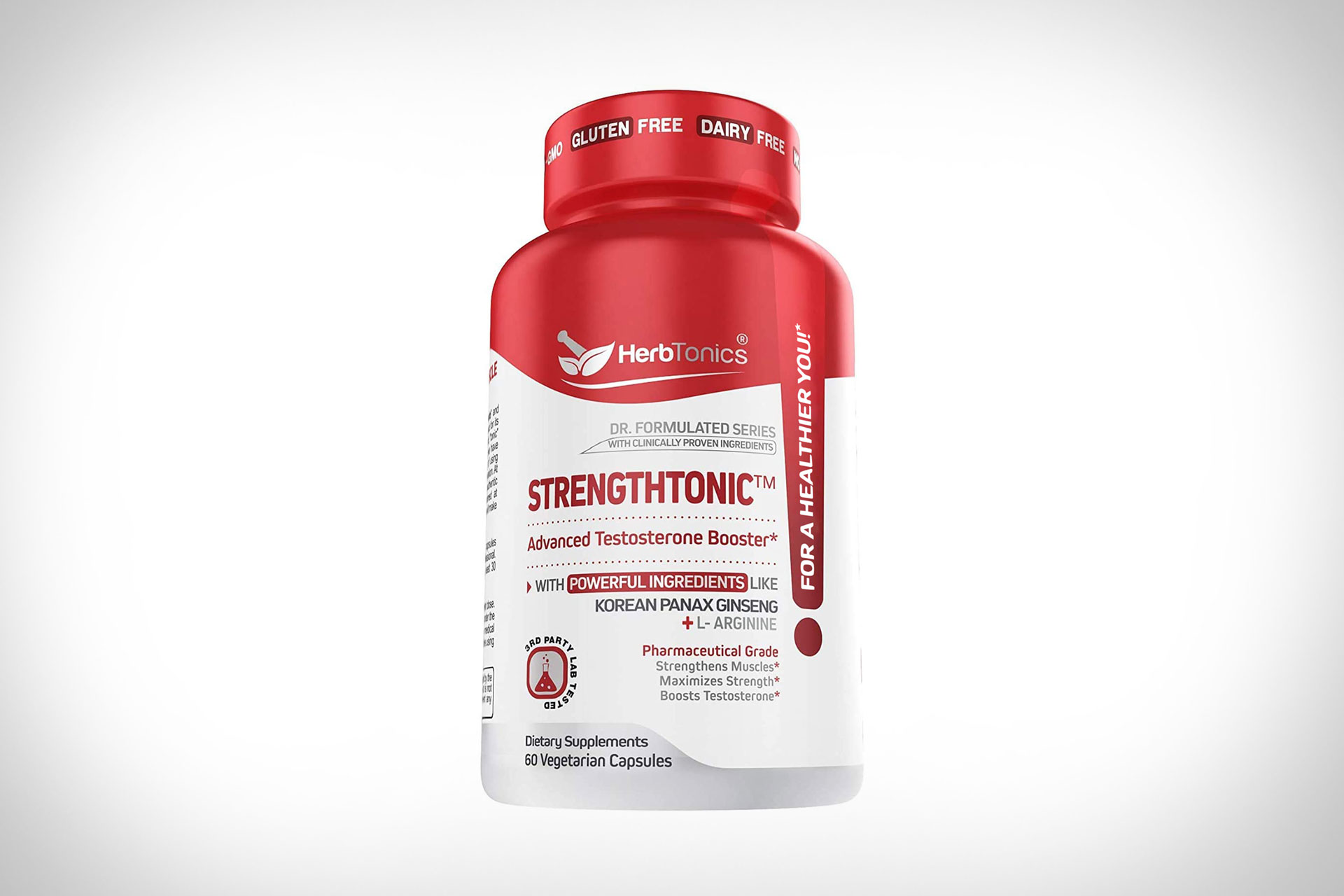 Tirez le meilleur parti de votre programme d'entra�nement avec Strengthtonic d'Herbtonics. Strengthtonic est formul� pour aider � stimuler la testost�rone et � augmenter l'endurance et la croissance musculaire avec une combinaison de ginseng panax cor�en enti�rement naturel et de ginkgo biloba. La testost�rone diminue avec l'�ge et Strengthtonic peut aider � stimuler la production naturelle pour am�liorer les performances physiques et mentales. Tous les suppl�ments Herbtonics sont enti�rement naturels, fabriqu�s aux �tats-Unis et rigoureusement test�s par des tiers.