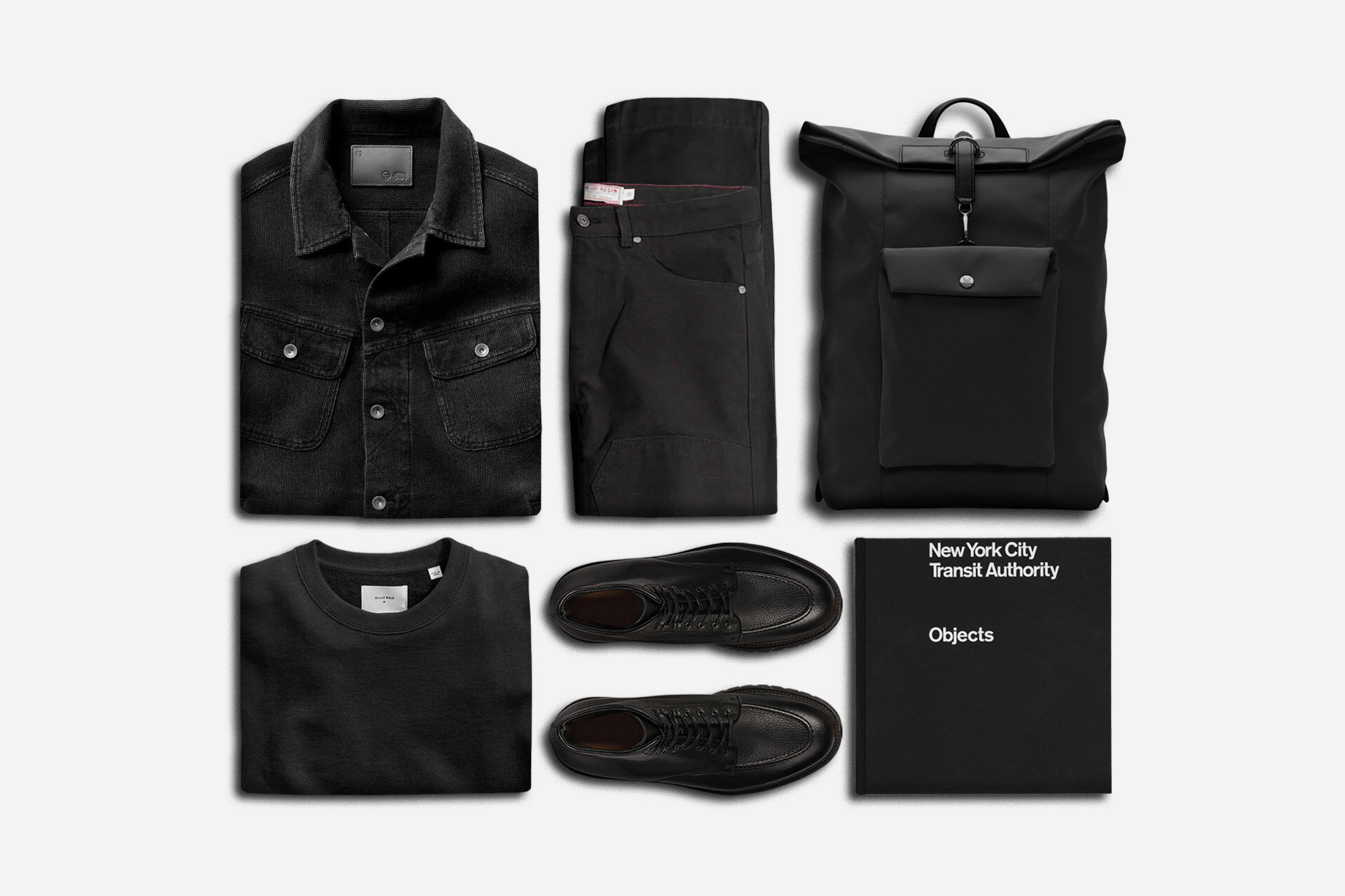 Short or long, you can ensure the next trip will be comfortable in this all-black, book-laden outfit.
