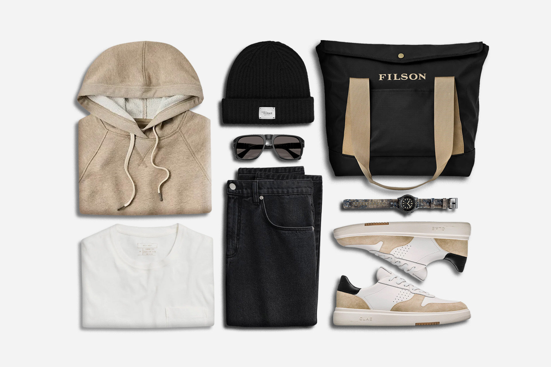 These comfortable layers pair Fieldworth hoodie with Wax London jeans and Clae sneakers.