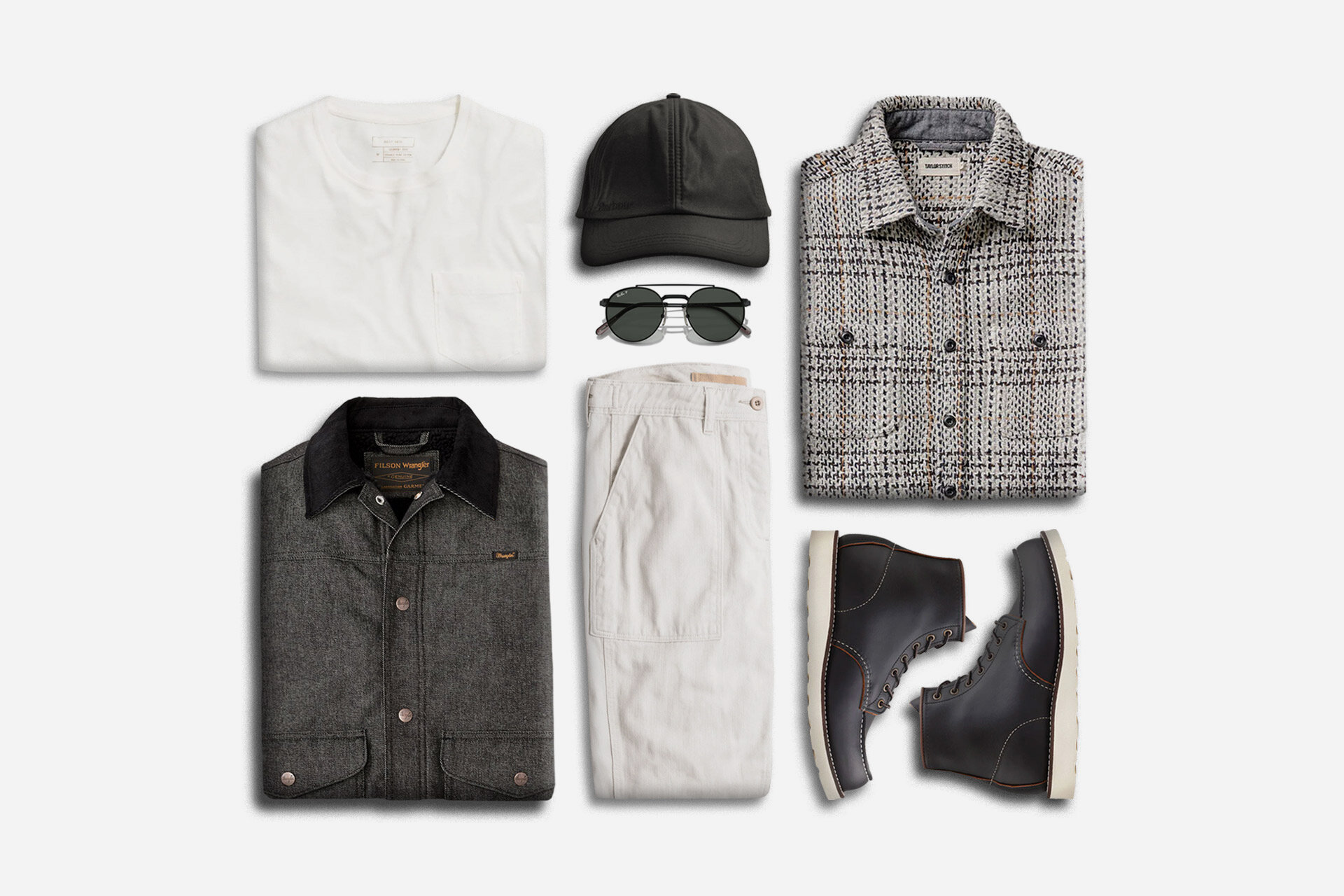 You won't be breaking rocks, but maybe bread, in this stone, black, and grey head-to-toe ensemble.