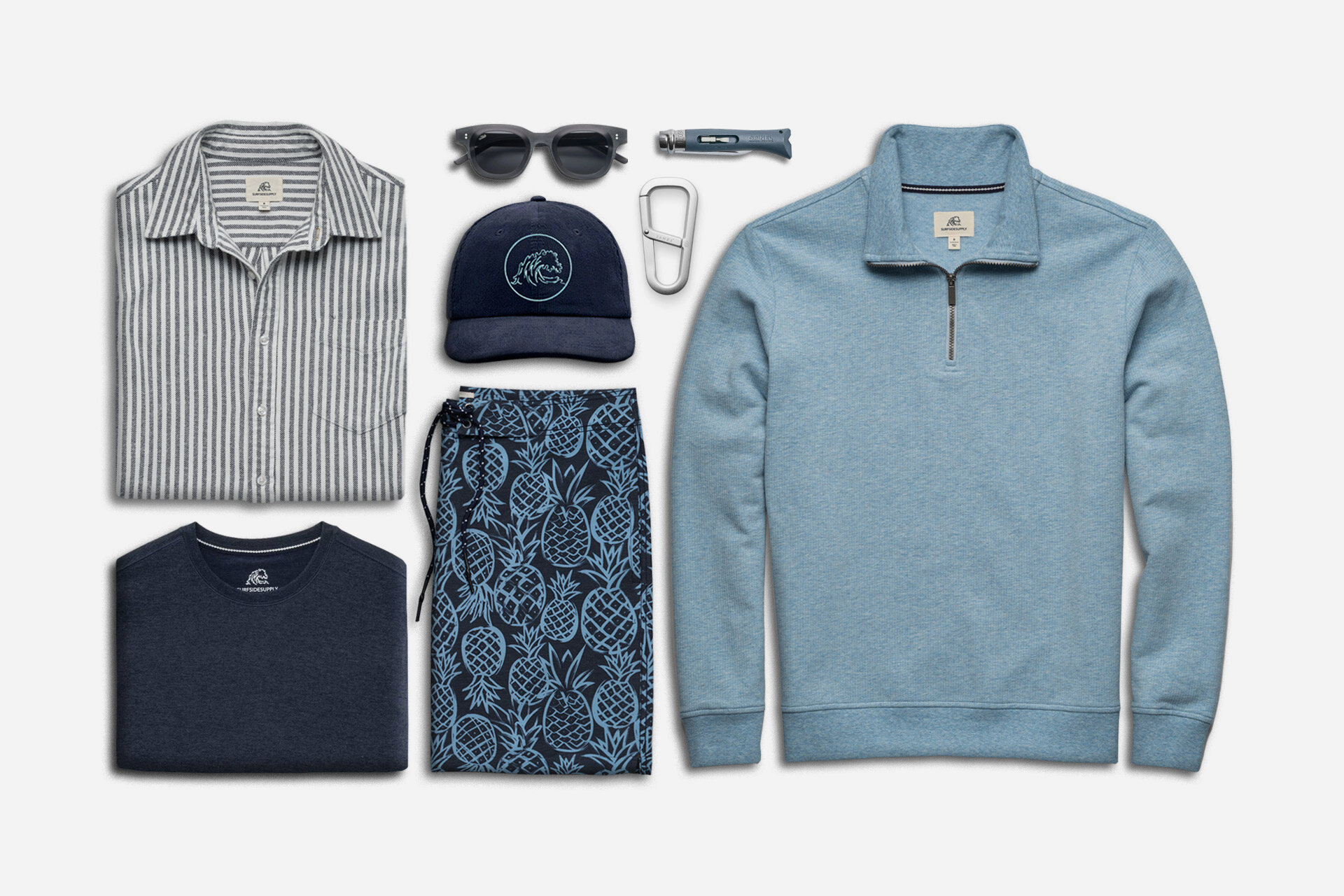 Prepare for a relaxing day on the shoreline with this accessorized, blue-hued ensemble.