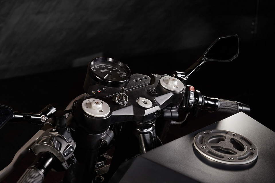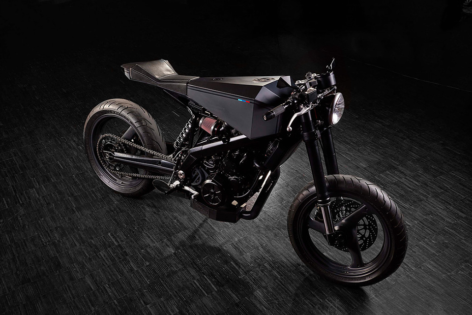 For their first build, Hyde Designs from Cape Town have quickly gained the attention of those with a keen eye for a great looking bike. The Hyde Octavia BMW X Challenge Motorcycle was built in six months and used the BMW X Challenge for its 650 Rotax engine, open swingarm, and main structural frame. The finished product is quite a departure from the BMW though, with an angular custom-welded steel tank and a fiberglass tail. Dubbed "Octavia", it's a dark, modern Café Racer that's sure to turn heads.