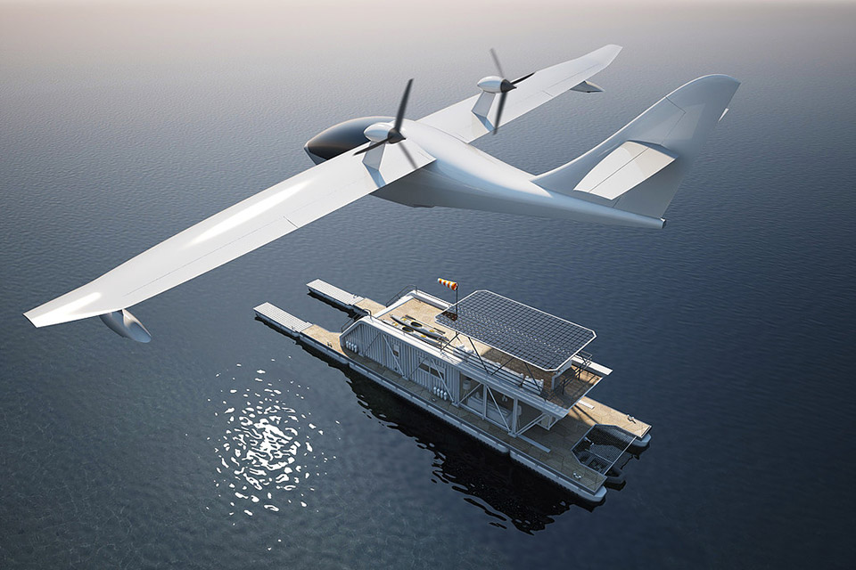 Hydroplane pilots have trouble finding parking spots just like the rest of us. The HydroHouse gives both pilot and plane a place to rest. This concept combines a houseboat and water parking in a single floating structure, crafted from prefab modules that are trucked to its site. Its industrial-style interior includes three bedrooms with one master, a full bathroom, and a combination kitchen/living room. The structure can also double (triple?) as a wharf for boats, and the whole thing is powered by solar panels, with dual electric engines for propulsion.