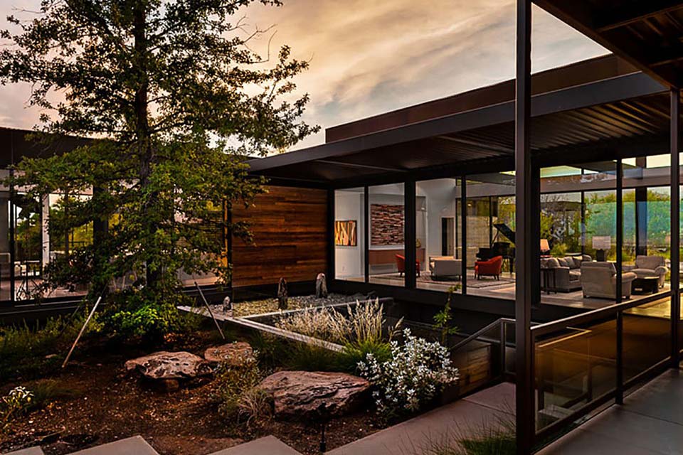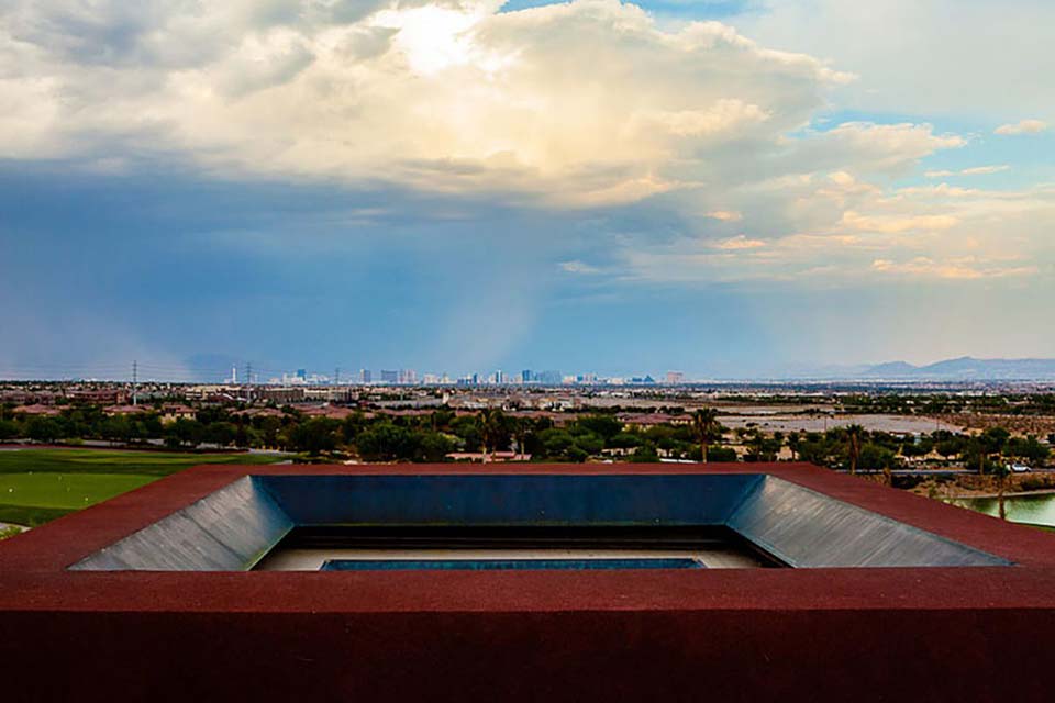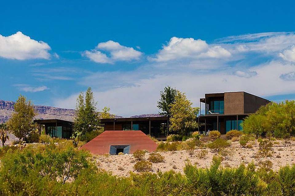 庭にガーデンノームのいる家があるのなら、ジェームズ・タレルのスカイスペースを置いている家もある。アローヘッド・ハウスはどちらかと言うと後者の方だ。ザ・リッジ近くの砂漠に建つこの家は、中央に中庭を囲み、現代アート作品を揃えた住宅である。建物自体はクリーンなラインとサンドカラーのボックスの組み合わせで設備と揃ったイメージに。また屋外には、プールや屋内バスケットボールコート、地下ガレージもある。印象的なのは屋外だけではない。5室のベッドルームと5つのバスルーム、シアター、ワインセラーを揃えたインテリアの注目すべきポイントは何と言っても高さのあるリビングエリアだ。ガラス張りの部屋からは砂漠の景色や周囲の山々、ラスベガスのネオンまでもが眺められる。