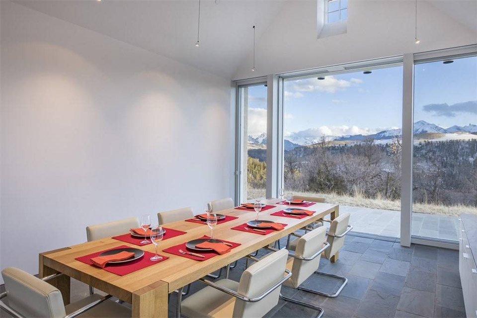 10棟のパビリオンが交差する「グレイ・ヘッド・ハウス」は、ロッキー山脈というより趣のあるスイスの村である。コロラド州のスキータウン、テルライドからすぐそばにある、絵のように美しい敷地面積35エーカーの土地に建つ、約1,980平米のバケーションホーム。円形の車道を囲んで、石灰岩の建物群が三日月型に並び、それぞれの棟からは違った視点が楽しめる。住居スペースは機能的に振り分けられ、環境の素朴さを埋め合わせるようなコンテンポラリーなインテリアでまとめられている。空間をさらに広く見せるアーチ型の天井にはめられた、大きな窓からは牧場や山頂などドラマティックな風景が広がる。