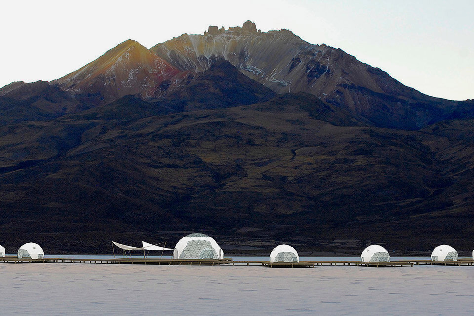 With its flat, white surface and surrounding mountain formations, the alien landscapes of the Uyuni Salt Flats are the perfect backdrop to the futuristic Kachi Lodge. The resort looks more like a space camp with its network of igloo-like domes. Each solar-powered pod is situated on a wooden platform and features a private bathroom and double bed looking out onto the surreal setting. But there won't be much time for resting, the day starts with a morning hike to a cactus-covered island followed by a trip to visit the mummies of Coquesa or the archeological site of Alcaya. If you're really feeling adventurous, trek to the lower lip of the Tunupa volcano crater. Guest can refuel at the central done where Gustu Restaurant prepares authentic Bolivian fare before ending the night examining the night sky.