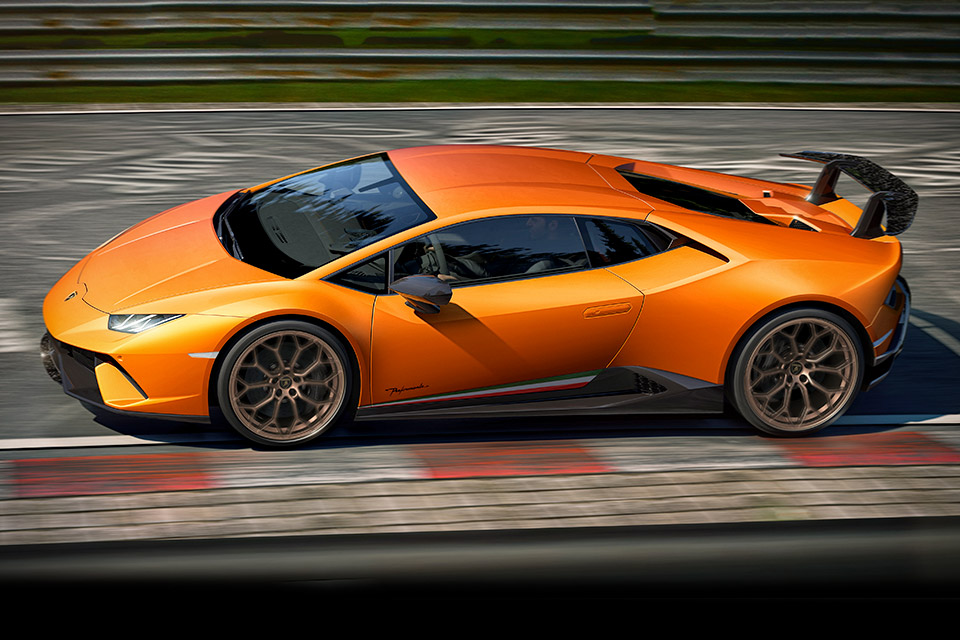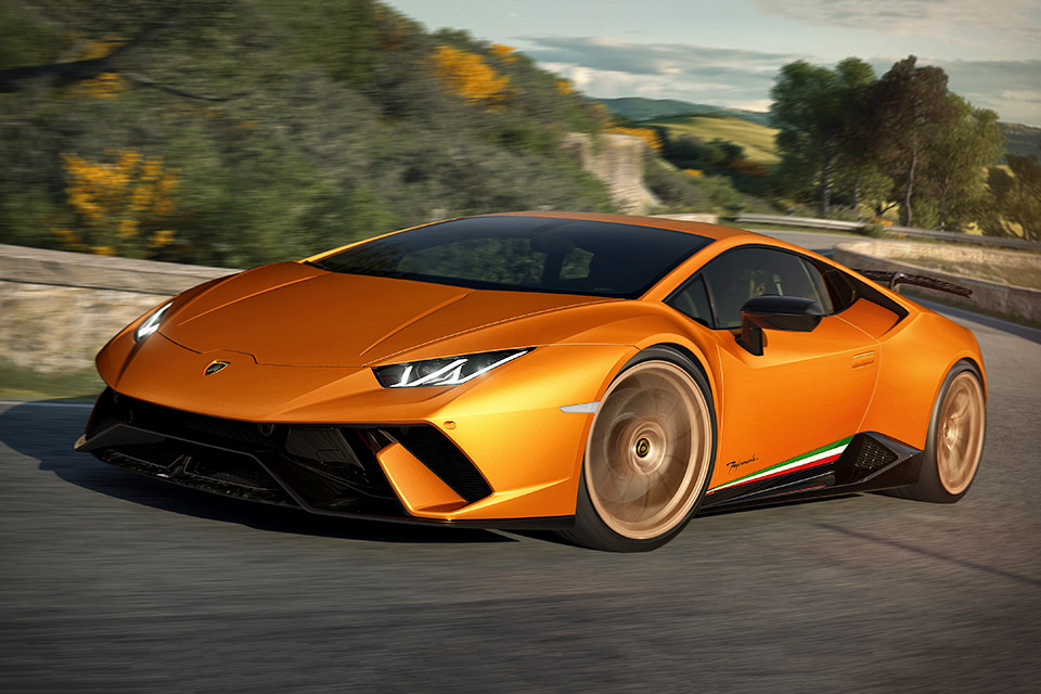 The Huracan was already an impressive piece of engineering. It only gets better with the Lamborghini Huracan Performante. At its heart is the most powerful V10 Lamborghini has ever produced, outputting 640 hp, and paired to a seven-speed dual clutch transmission. It's 40kg lighter than the next-lightest Huracan, with forged composite used in the front and rear spoiler, bonnet, rear bumper, and diffuser. A patented active aerodynamic system closes and opens flaps in the front, and rear providing added downforce or lower drag, and the stiffer suspension makes for an even more engaging drive. As a result, it can move from 0-62 mph in just 2.9 seconds and hit a top speed of over 200 mph, enough to lap the Nürburgring in just six minutes and 52 seconds.