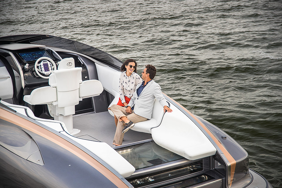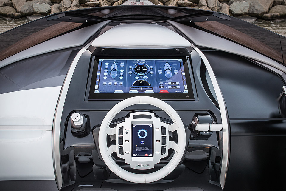 Curious as to what a Lexus vessel might look like, Toyota motors president Akio Toyoda decided to go ahead and build one. The Lexus Sport Yacht is the result. Created by the Lexus Design Center and built by Marquis-Carver in Wisconsin, this 42-foot, eight passenger yacht has the same combination of power and luxury as the company's cars. It's powered by a pair of 5.0L V8 engines producing 880 total hp, enough to hit speeds of up to 43 knots, helped along by CFRP construction that saves more than a ton over a fiberglass build. The cockpit is home to a color touchscreen that lets the pilot monitor and control all aspects of the ship, and high-end finishes of leather, wood, and glass offer the same comforts you'll find in Lexus' land-locked transports.