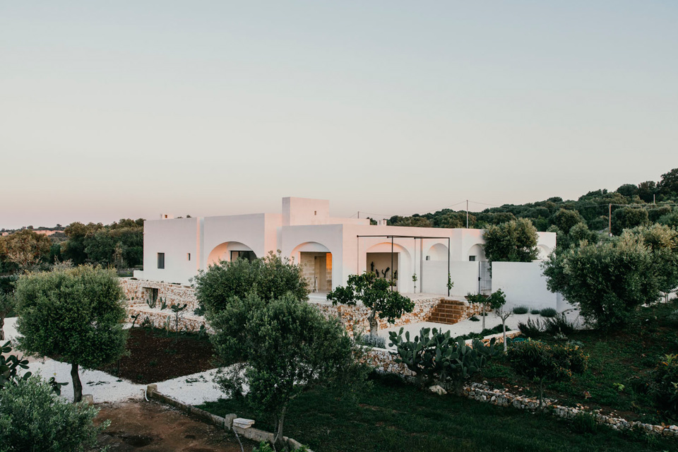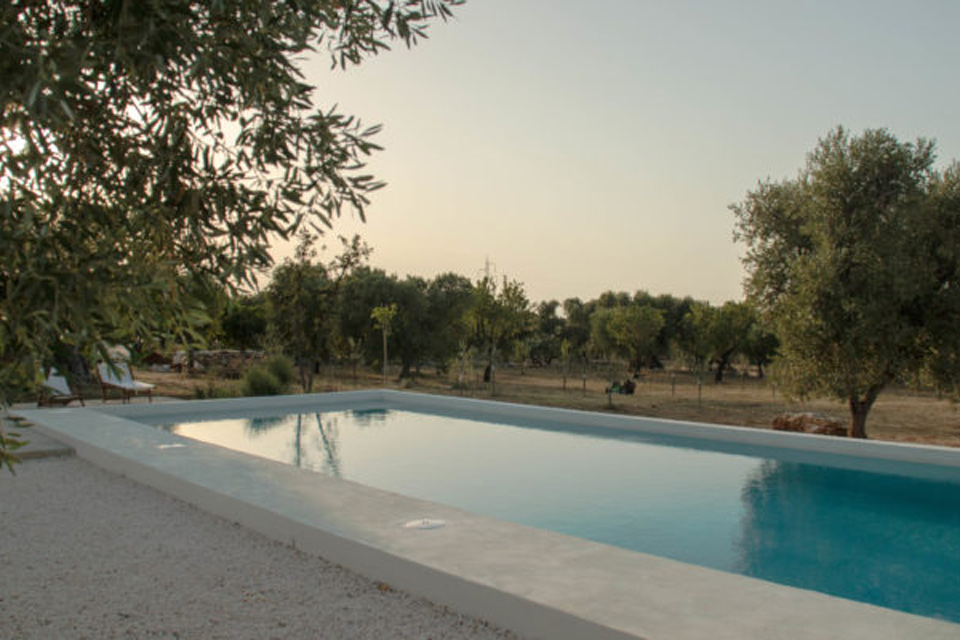 Set of a ridge overlooking rows of olive trees, Masseria Moroseta offers modern amenities clothed in a rustic sandstone facade. The structure is modeled after the primitive farmhouses found throughout the Puglian countryside, using local materials and traditional techniques of the region to blend into its rural setting. The four rooms and two suites are all arranged around a central courtyard, each providing a king-sized bed, showers, and private outdoor space overlooking the olive grove, while a shared rooftop terrace affords views of the Adriatic Sea. The site also features a large pool, spa, and a selection of organic fare prepared with both on-site and local ingredients.