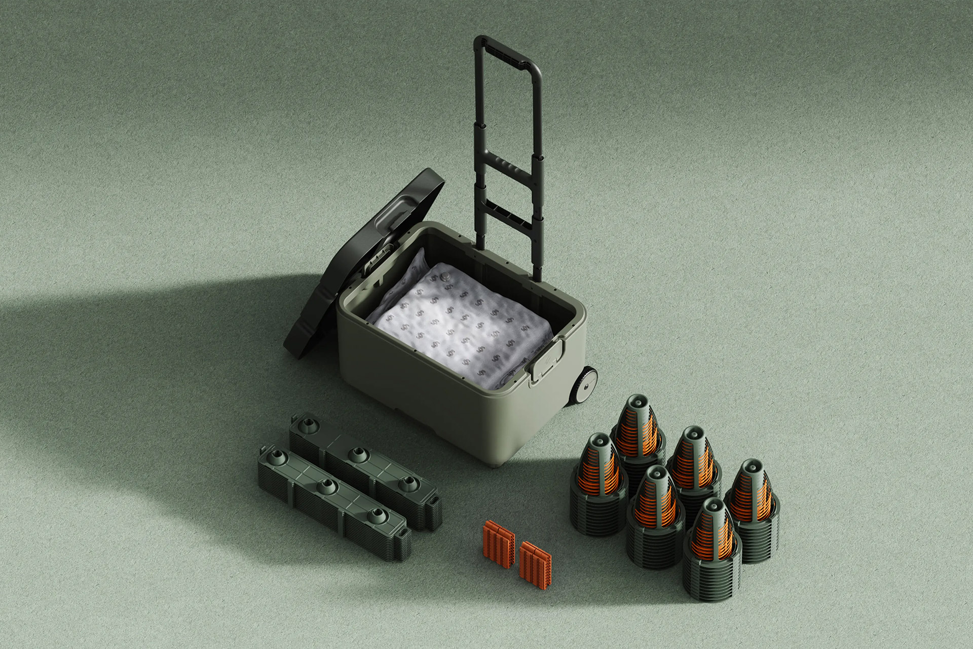 Camping generally means sleeping on an inflatable mattress or a thin piece of foam on the ground. The Mazzu Camping Mattress offers an alternative with a system of 72 collapsible spring units, allowing the entire package to pack into a case no larger than a cooler. Co-developed with London-based design studio Layer, it includes the springs, as well as a cord to hold everything together and a cushion that goes over the top for added comfort. The mattress is available in China soon; international pricing has yet to be announced.