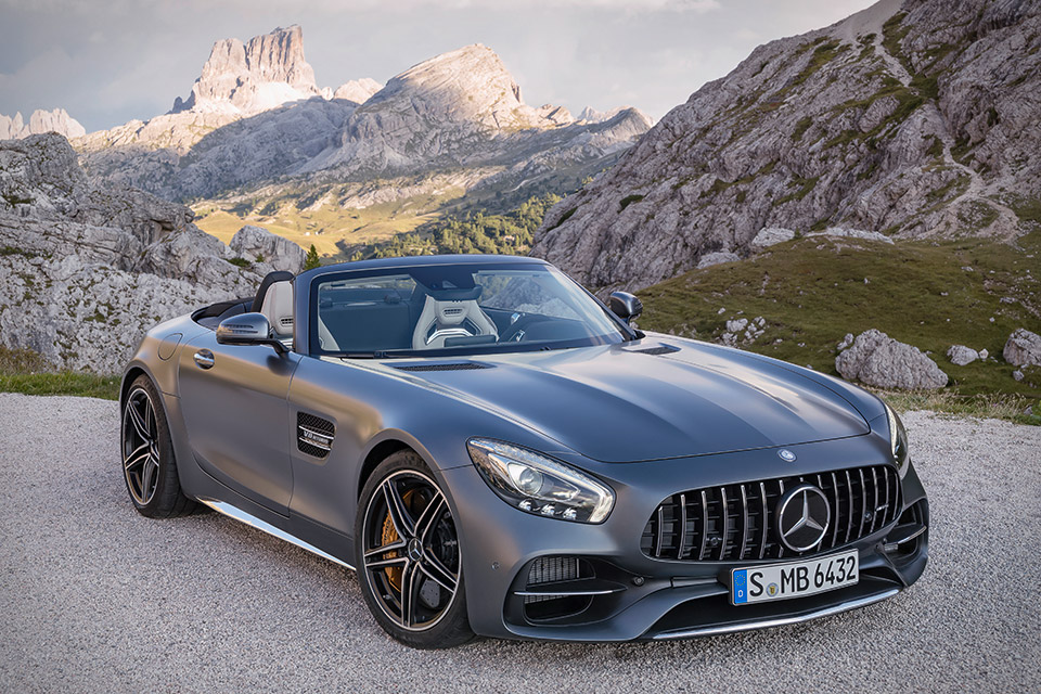 The first topless version of the Tri Star's flagship sports car, the Mercedes-AMG GT Roadster adds open-air fun to an already exhilarating driving experience. It comes in two varieties: a standard model with an output of 469 hp, and a GT C model with 550 hp, good for a 0-60 time of 3.7 seconds and a top speed of 196 mph. Both are powered by a biturbo 4.0L V8 paired with an AMG seven-speed, dual clutch transmission, and the GT C borrows tech from the top-of-the-line GT R with active rear-axle steering, active air management, an AMG Ride Control sport suspension, a performance exhaust, and a wider, more muscular build.