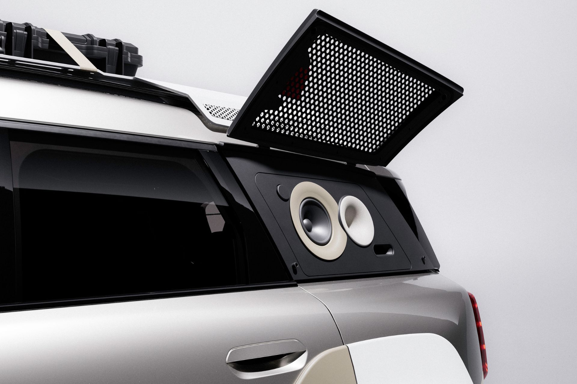 Austrian design studio Vagabund built its reputation reworking vintage BMW motorcycles and Porsche Safari builds into something sharper and more considered than the originals. For their latest project, they turned to MINI, transforming two Countryman S ALL4s into a pair of one-off show cars built around a single idea: the car as a mobile sound system. The rear side windows are gone on both, replaced by a purpose-built speaker housing cast in polymer granite, chosen for its acoustic properties, with tweeters and mid-range drivers integrated into the bodywork and subwoofers that activate when the tailgate opens. Reworked wheel arches push a wider stance, the ride height is raised, and 20-inch wheels wear fully enclosed 3D-printed covers that deliberately reference loudspeaker design. A laser-cut aluminum roof rack with a stainless-steel mesh surface continues the speaker motif. One car is finished in Melting Silver, the other in monochrome Midnight Black, a pair designed to be seen together as a composition. Both debut at Auto China in Beijing before heading to live events. Neither is for sale.