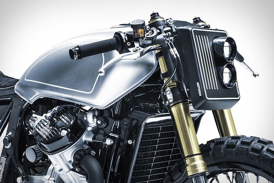 In the annals of performance motorcycles, the Honda GL500 Silverwing wouldn't make the cut — and that was part of the inspiration the Motoism GL500-JPN. A massive overhaul takes the formerly sedate little cruiser to modern bike more capable than even Honda could have imagined. USD forks and brakes from a Honda CBR600RR shore up the front end, while the rear has been converted to a mono-shock setup from the original dual. Custom spoked alloy wheels wear aggressive enduro tires, while a hand-laid fiberglass fascia houses two HID lamps and LED running light. The bike is finished with a complete motor tear down and rebuild for another few decades of riding. Production is limited to just 16 units.