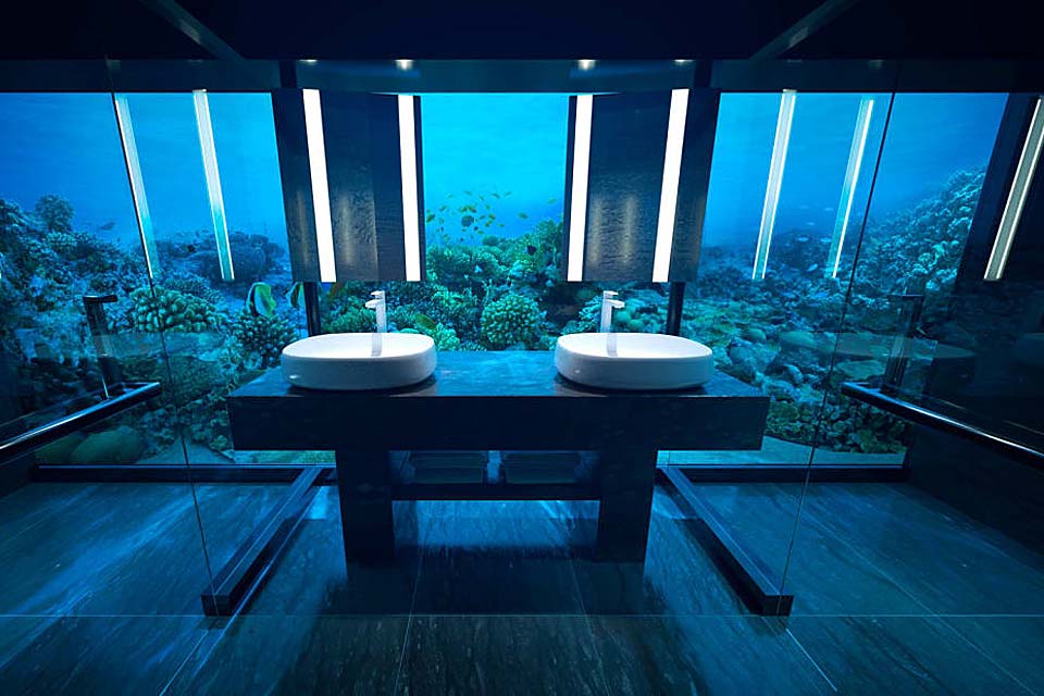 Forget over the water bungalows. Conrad Maldives Rangali Island Resort is flipping the script with the first underwater villa. Like sleeping in a fish tank, the Muraka is housed in a glass dome sitting 16-feet below the Indian Ocean. Turquoise water surrounds the bedroom, living area, and bathroom allowing you to gaze at the aquatic life as they swim by. Head to the surface and catch the sunset from the additional living room, bedrooms, and infinity pool. Continue the underwater theme with dinner at Ithaa — the resort's submerged restaurant — or opt for one of their other 11 eateries. The property also offers a range of other villas and suites, as well as two spas, three pools, and a wide variety of water sports.