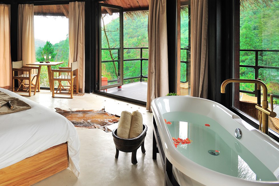 Perched on a hillside at the foot of Moganshan, the Naked Stables Resort mixes luxury design with primitive techniques. The hotel is made up of 121 treehouse villas, constructed from stone masonry, traditional mud walls, and reclaimed timber frames. Surrounded by a bamboo forest, each room is immersed in the natural surrounding with generous glazing and private balconies. Ranging from casual poolside dining to European cuisine, a trio of restaurants serve a variety of fare made with ingredients harvested on-site. Entertainment includes the usual horseback riding, yoga, hiking, biking, golfing, and fishing, as well as some traditional activities like tea picking, bamboo weaving, and pottery — or you can opt to get behind the wheel of a Land Rover and rip through the longest all-terrain driving track in China.