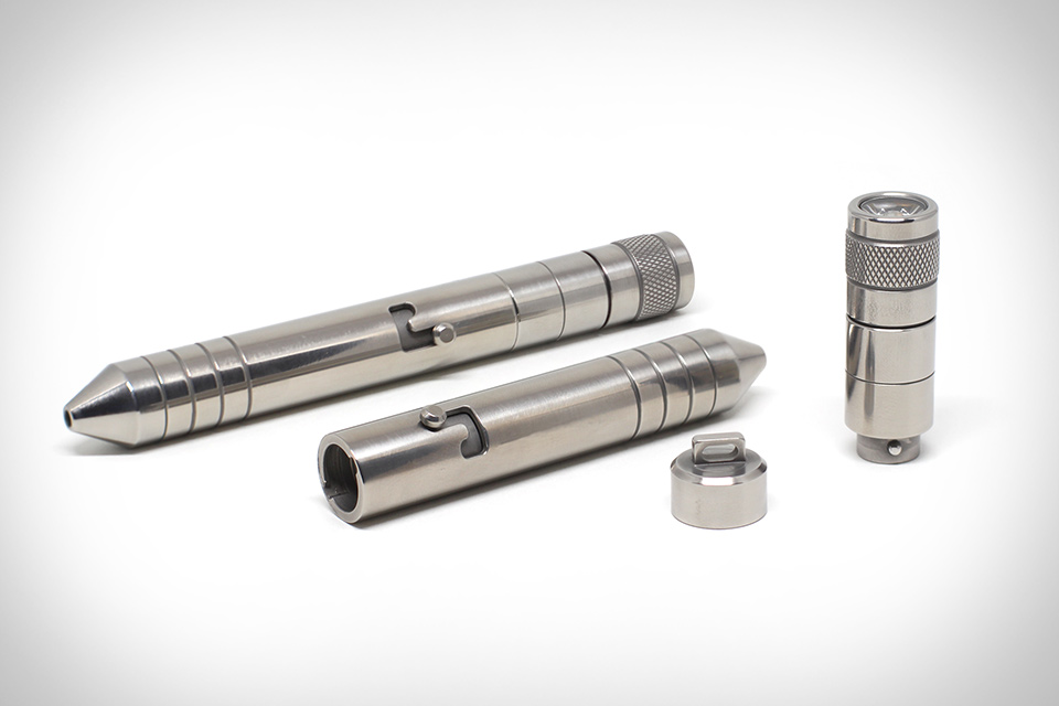 Your everyday carry is starting to get cluttered, so instead of jettisoning something important, consider options like this P1 Modular Titanium Pen + Light from Refyne. It's two items in one, a bolt action pen with magnetic quick release and a flashlight that recharges via micro USB. Made from grade 5 titanium, it's tough, lightweight, and water resistant ensuring it will stand the test of time without adding to your everyday load. The bolt action mechanism causes the pen to retract intuitively, while the 130 lumen flashlight charges quickly and can help illuminate your path or locate hard to find items in a pinch. Choose from polished or matte finishes and make your everyday carry lighter and more efficient at the same time.