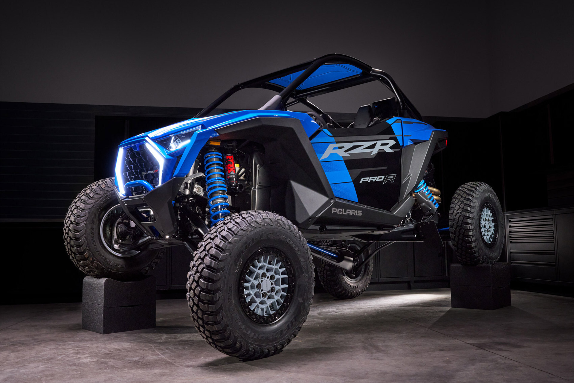 Polaris rewrites UTV capability with the RZR Pro R Ultra Edition, a side-by-side that pushes 225 horsepower through Dynamic DVS suspension. The system switches between three modes up to 200 times per second: Semi-Active responds to changing surfaces instantly, Locked maintains body control for desert speeds, and Unlocked extends wheel travel for rocky sections. The technology claimed the 2025 SCORE Series championship and consecutive Baja 1000 victories before production, which includes 32-inch BFGoodrich KM3 tires, an MPI racing wheel, 10.4-inch RIDE COMMAND display, Rockford Fosgate Stage 4 audio, and heated-vented seats. Velocity Blue bodywork marks the limited run of 500 units, available in two-seat and four-seat configurations.